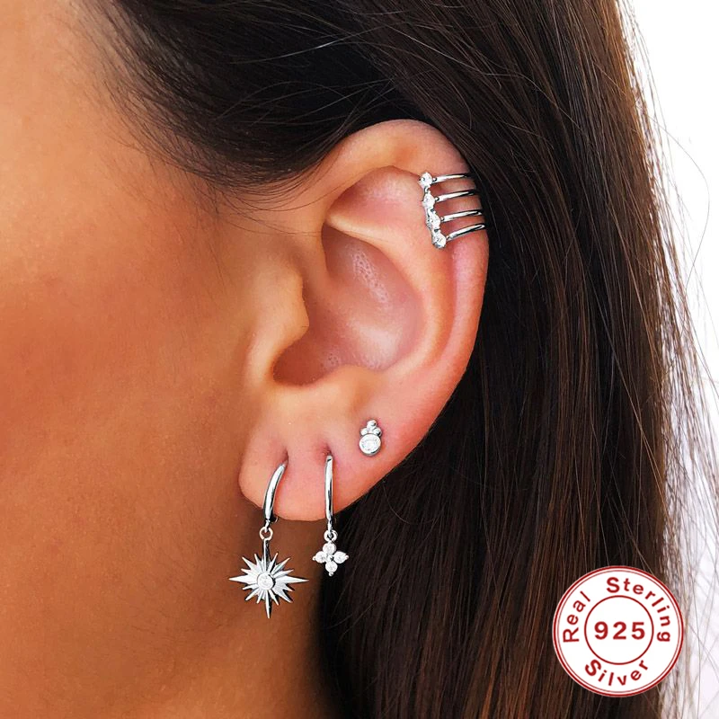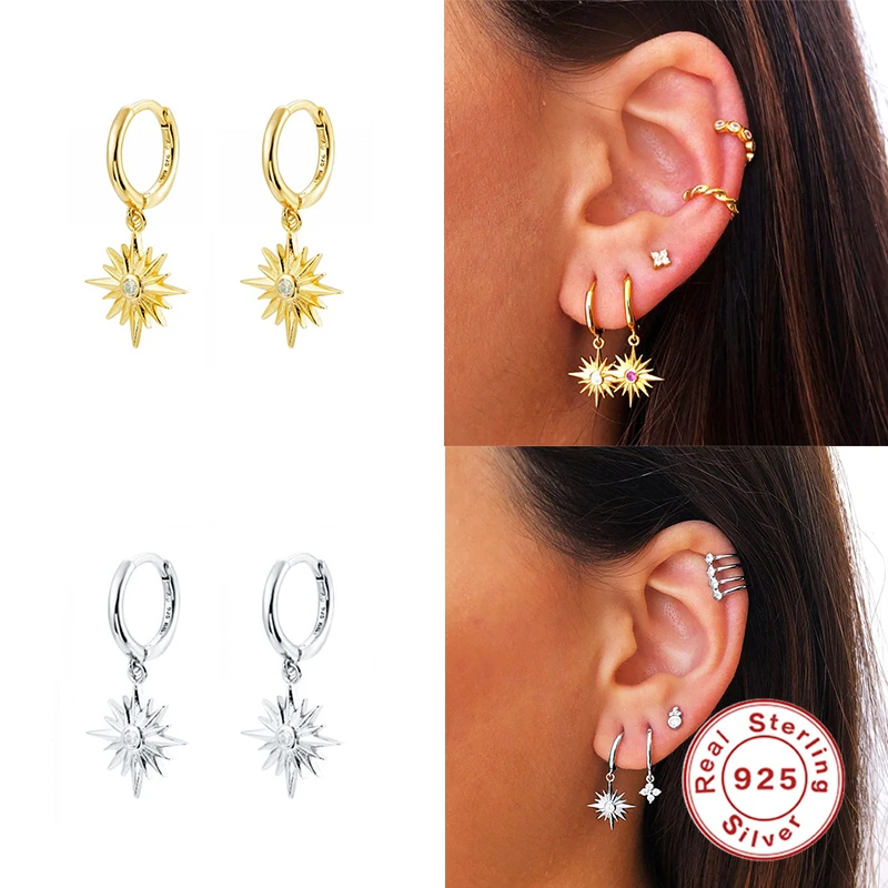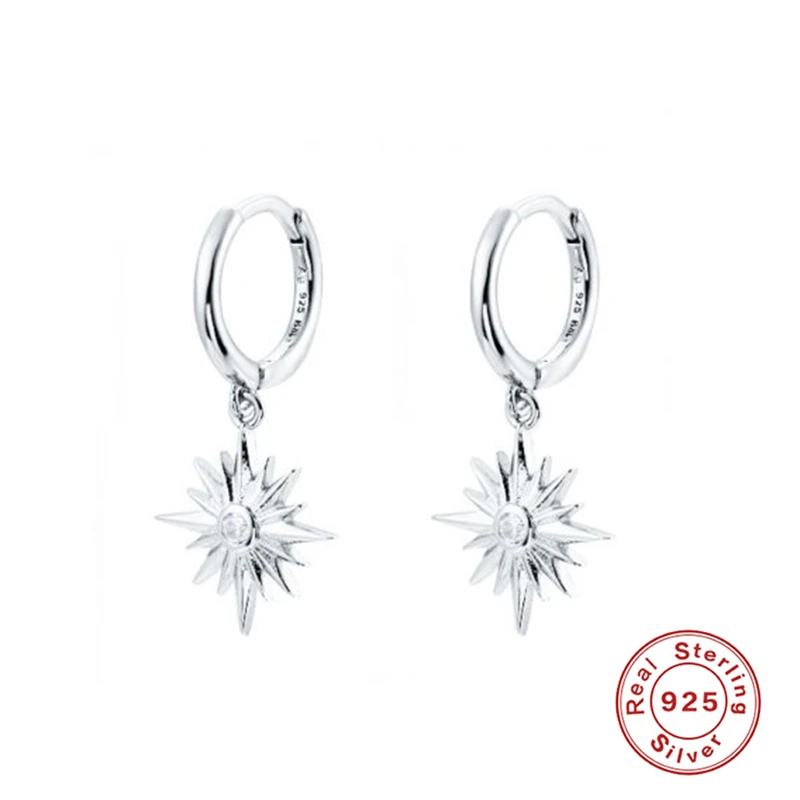 GS 925 стерлингового серебра серьги в виде колец, с подвеска в форме звезды с украшением в виде кристаллов; Цвет золотистый, серебристый Цвет серьги для женщин, хорошее ювелирное изделие, подарок