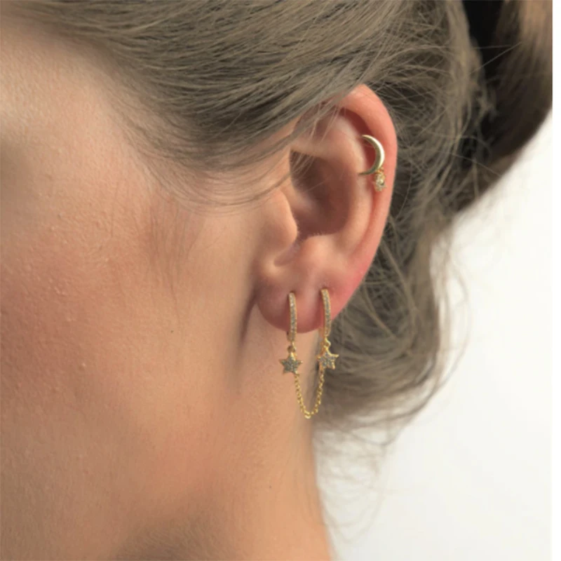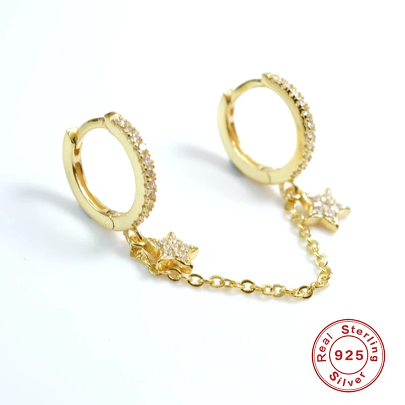 Серебро 925 пробы 9 мм Серьги-каффы для ушей Защитная цепочка с цирконием CZ подвеска в виде звезды со стразами ювелирные украшения