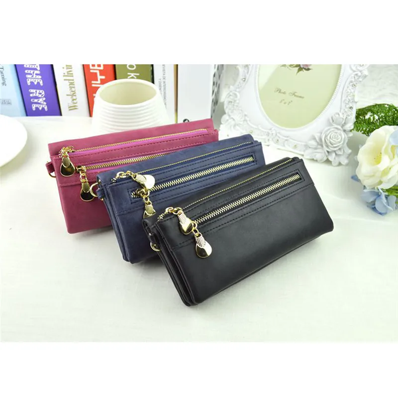 Новый элегантный женский кошелек, длинный вместительный Однотонный женский чехол на двойной молнии для телефона, денег, монет, карт, Дамский клатч