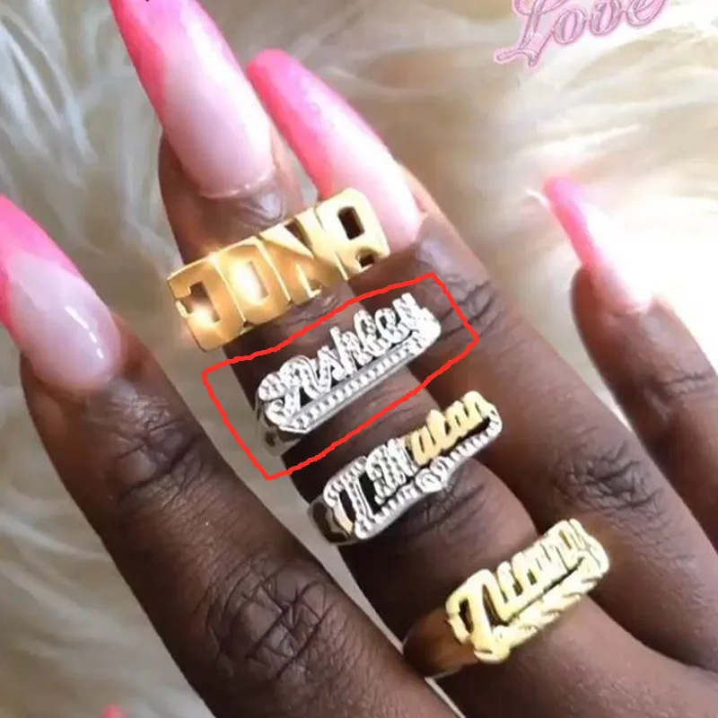 2021 Новое кольцо с именем на заказ, Золотое индивидуальное кольцо ...