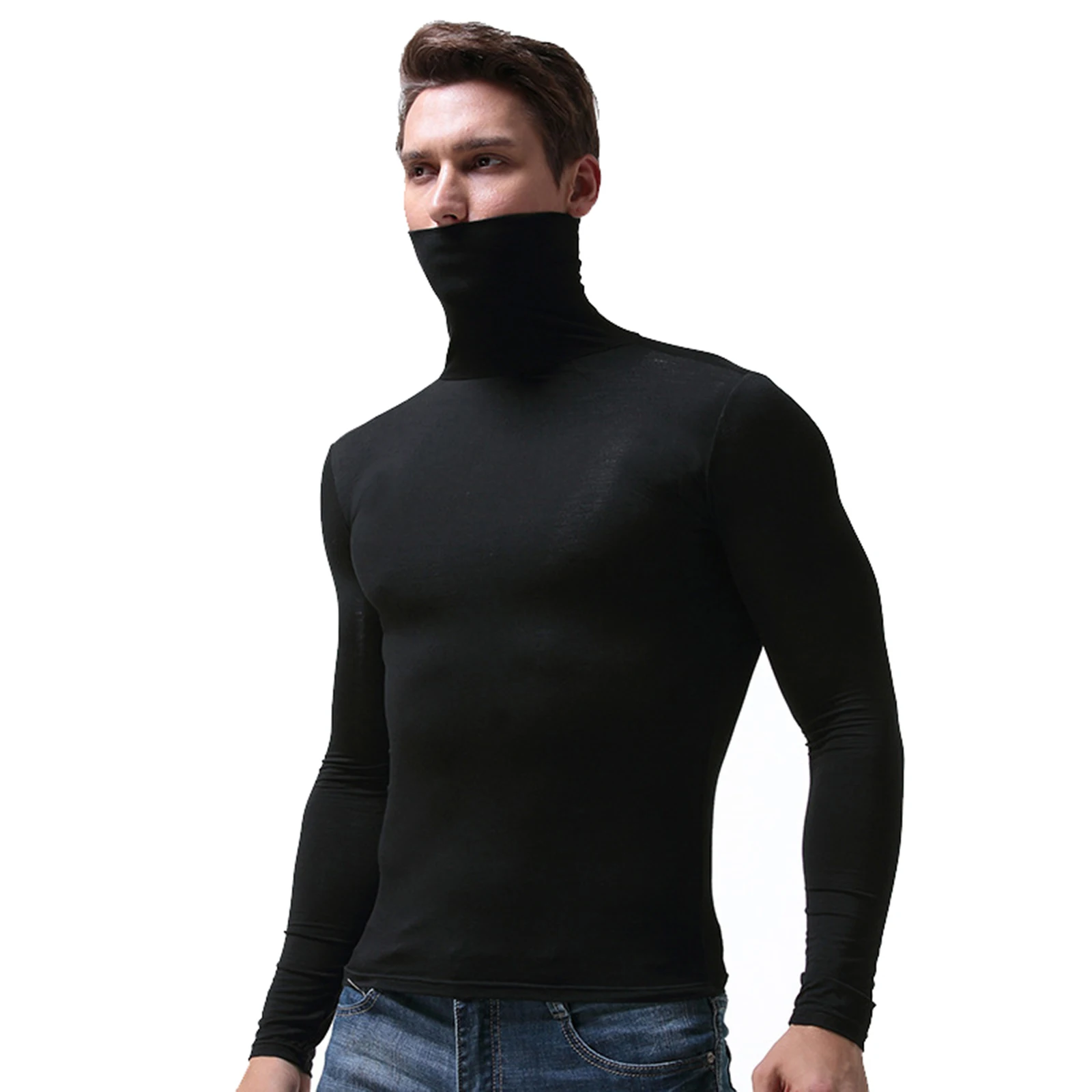 Мужские теплые компрессионные рубашки с длинным рукавом, водолазка, зимний базовый слой, топ, пуловер, легкая футболка TT @ 88