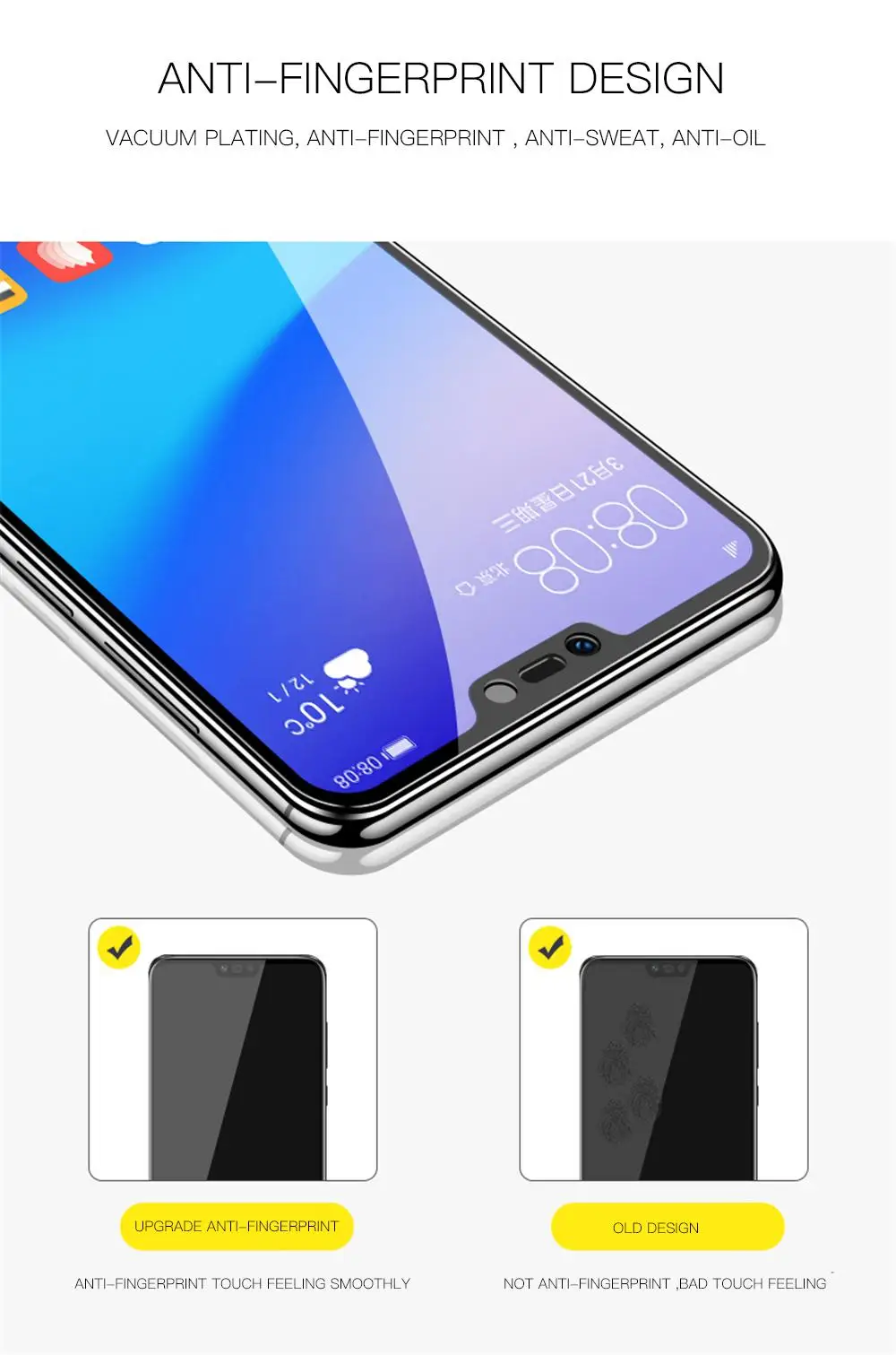 Покрытие против отпечатков пальцев: S urface является обработкой масла (олеофобное покрытие)