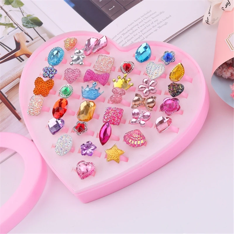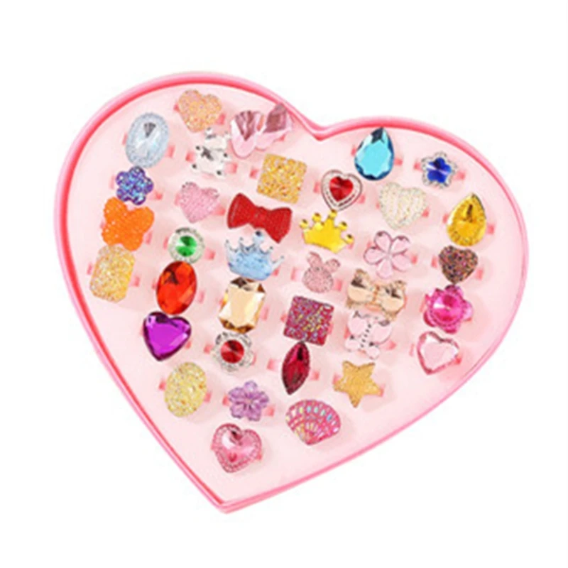 36 шт. блестящие Регулируемые кольца с бриллиантами в коробке фиксированный стиль для девочек идеальный подарок приз на Рождество и день рождения