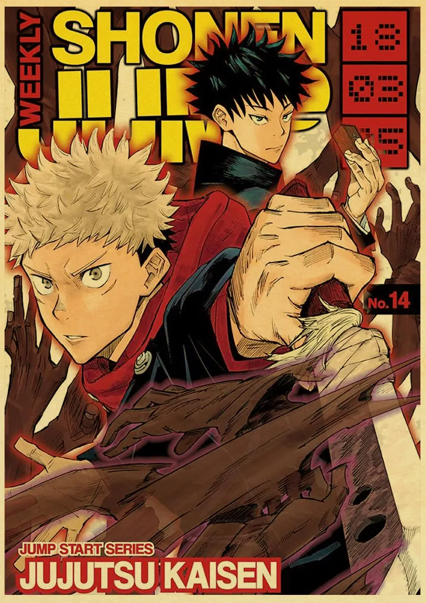 Винтажный популярный постер с аниме юдзюцу Kaisen, ретро постер, домашнее украшение, ретро постер, живопись, настенные Стикеры для комнаты, художественный Декор