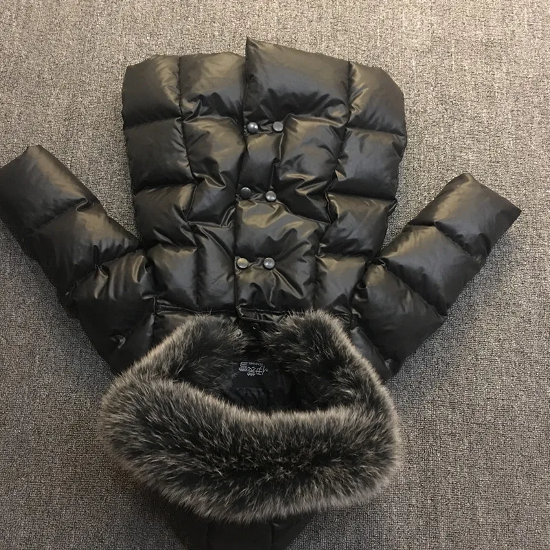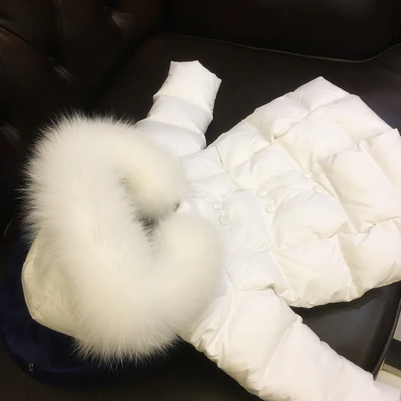 Зимний плотный пуховик для девочек детский длинный двубортный модный лыжный костюм воротник из натурального Лисьего меха-30 градусов