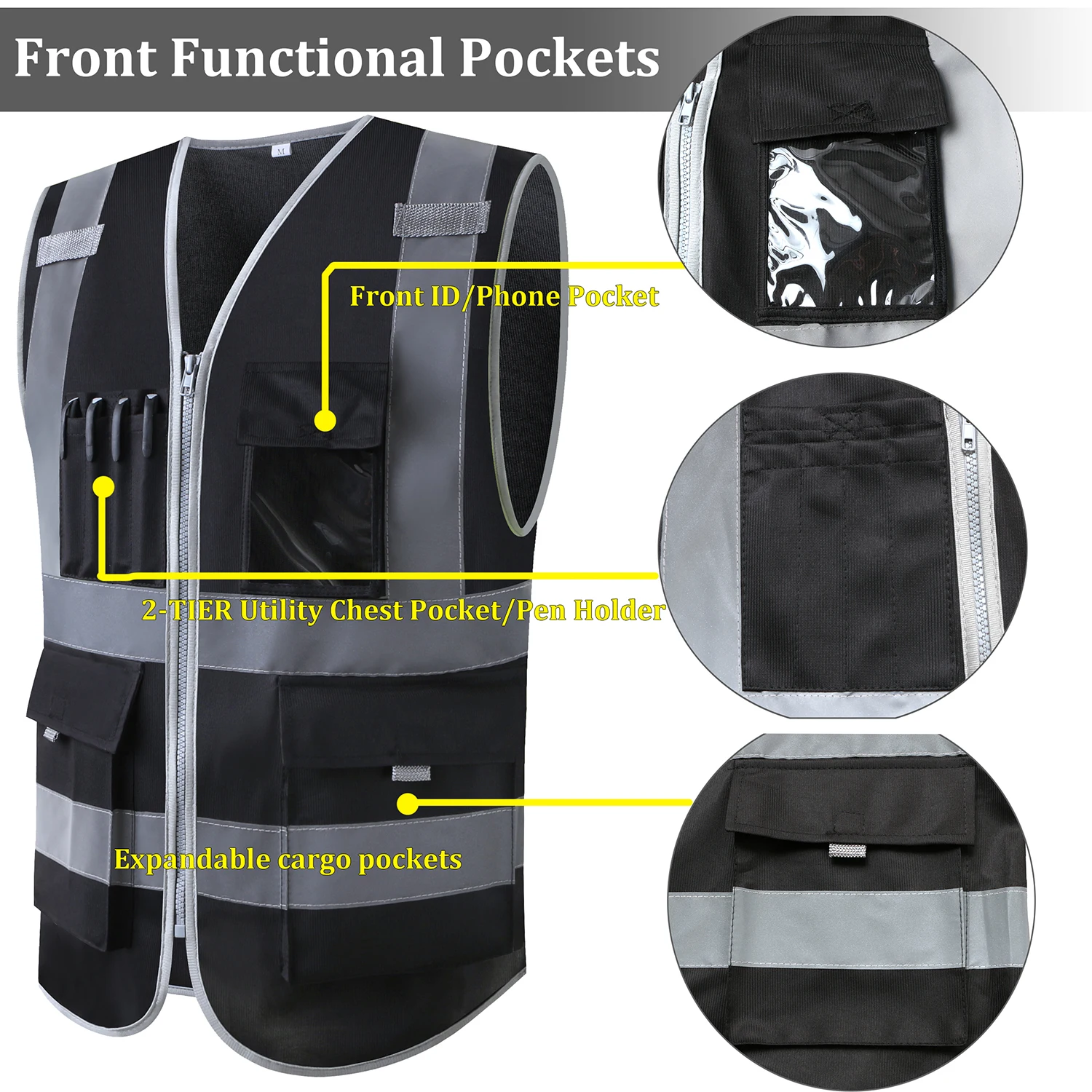 Высокая видимость молния спереди жилет безопасности со светоотражаю...