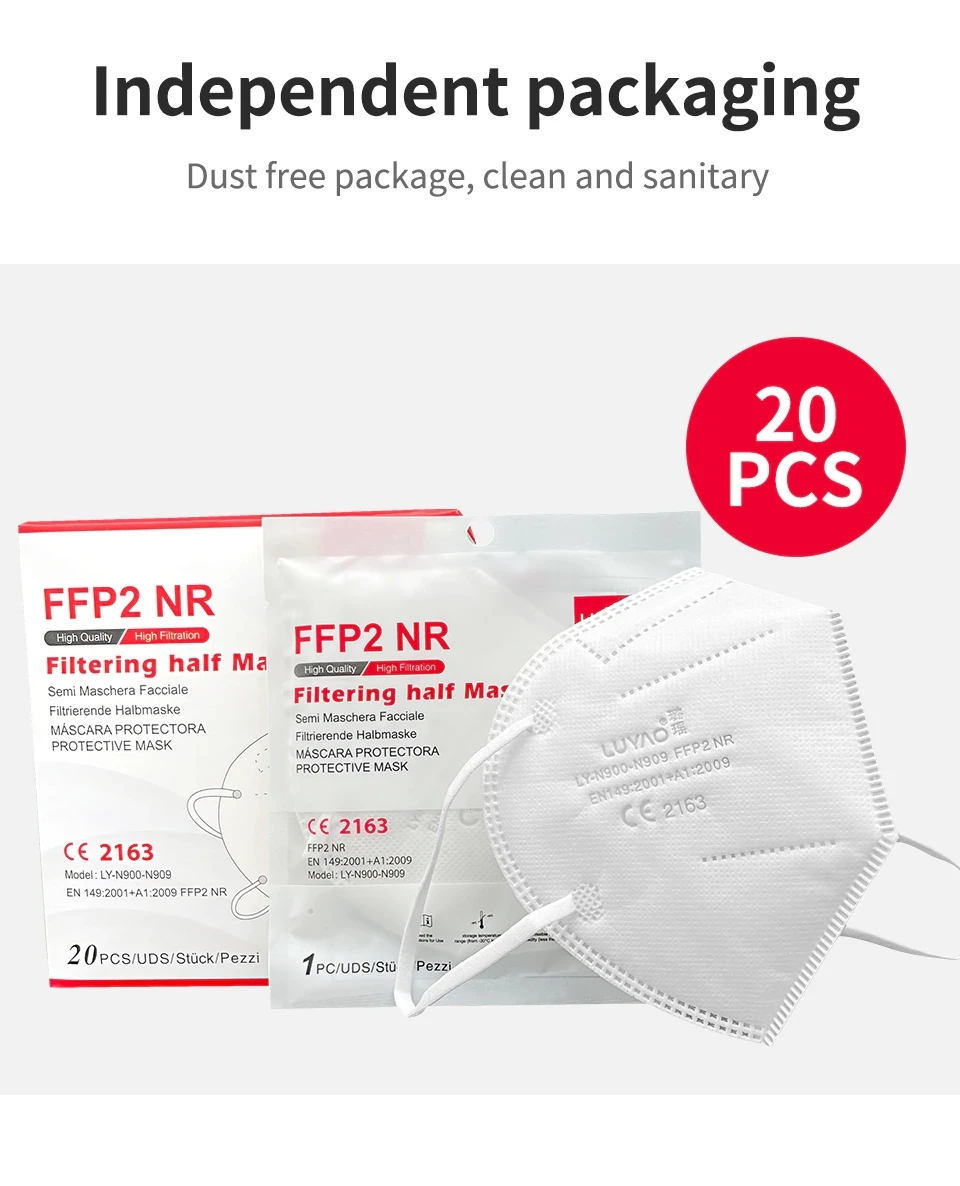20-100 шт индивидуально упакованные FFP2 luyao маски для лица CE защита многоразовая дышащая маска удобная эластичная петля для ушей Пылезащитная Личная