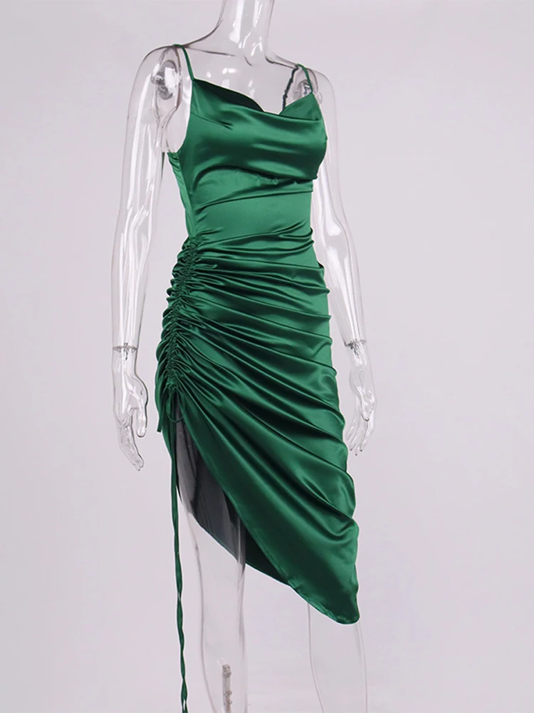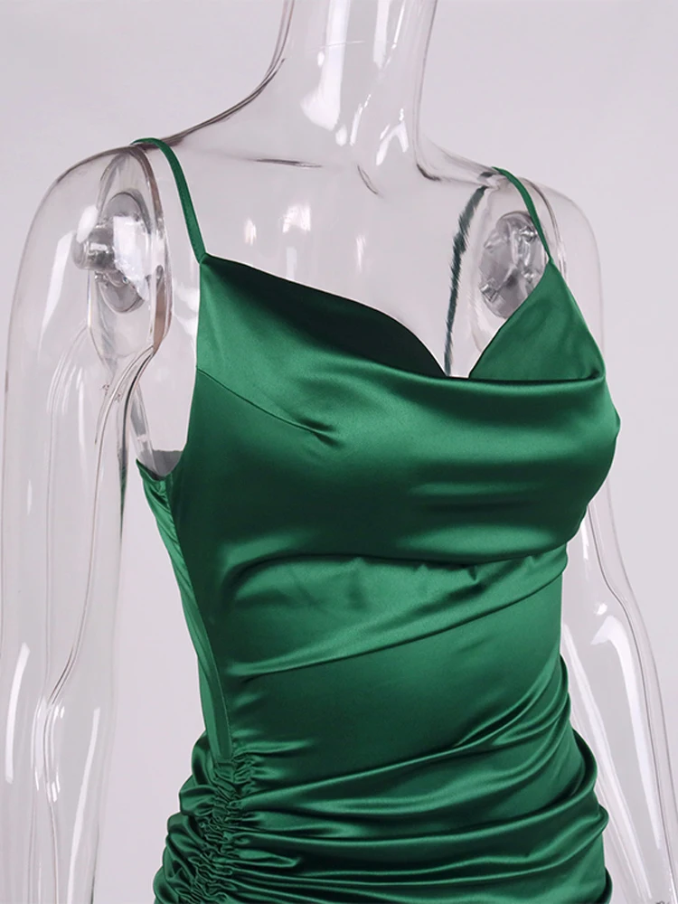 Женское атласное платье с рюшами NewAsia, длинное платье с завязками на тонких бретельках и открытой спиной, вечерние платья 2020