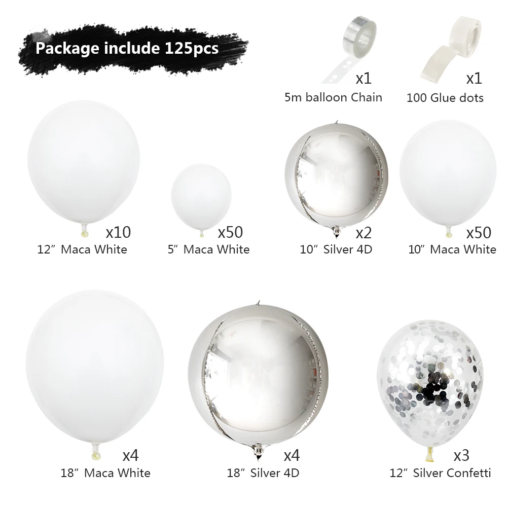 125 шт. Серебро 4D белый шар арка гирлянда комплект свадебные украш...