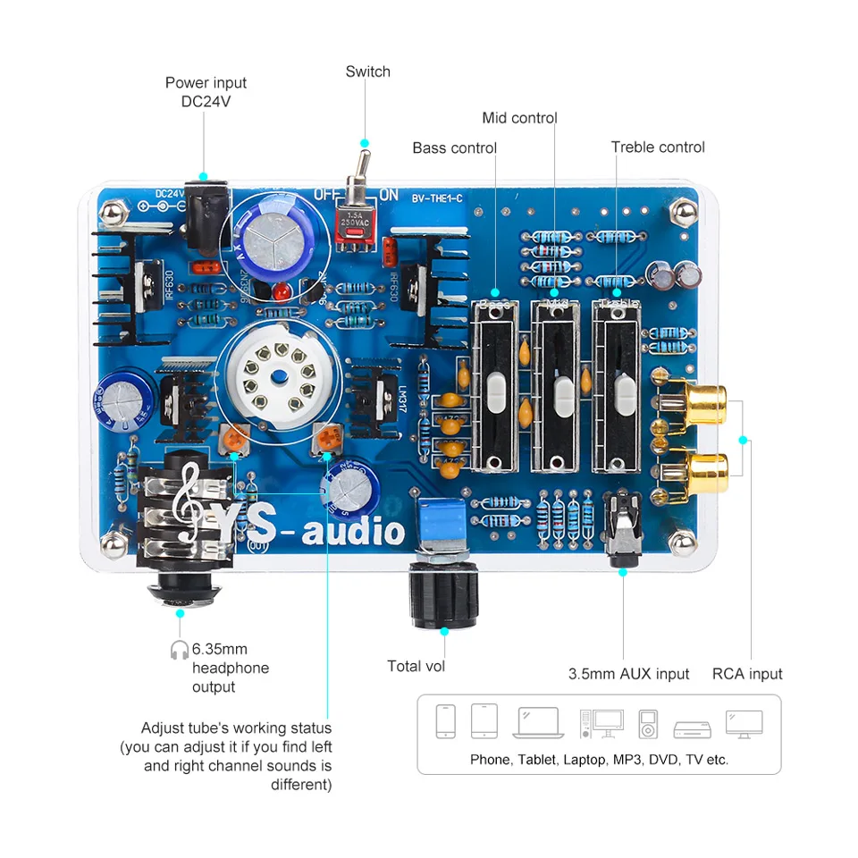 Трубчатый предусилитель AIYIMA 6N11, усилитель для стереонаушников, усилитель для наушников класса А, домашний буфер, усилитель звука с регулировкой громкости тона