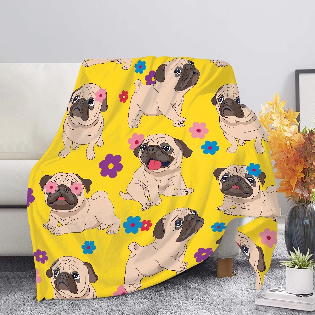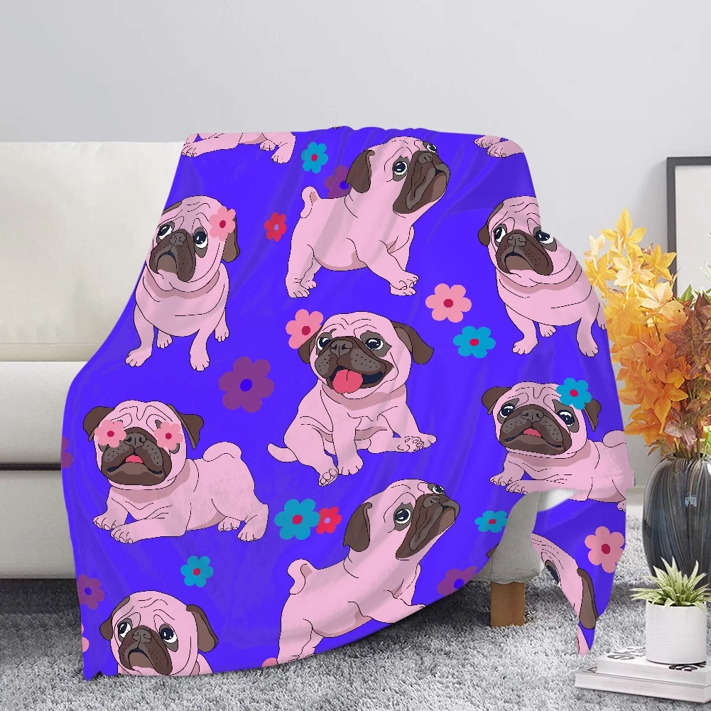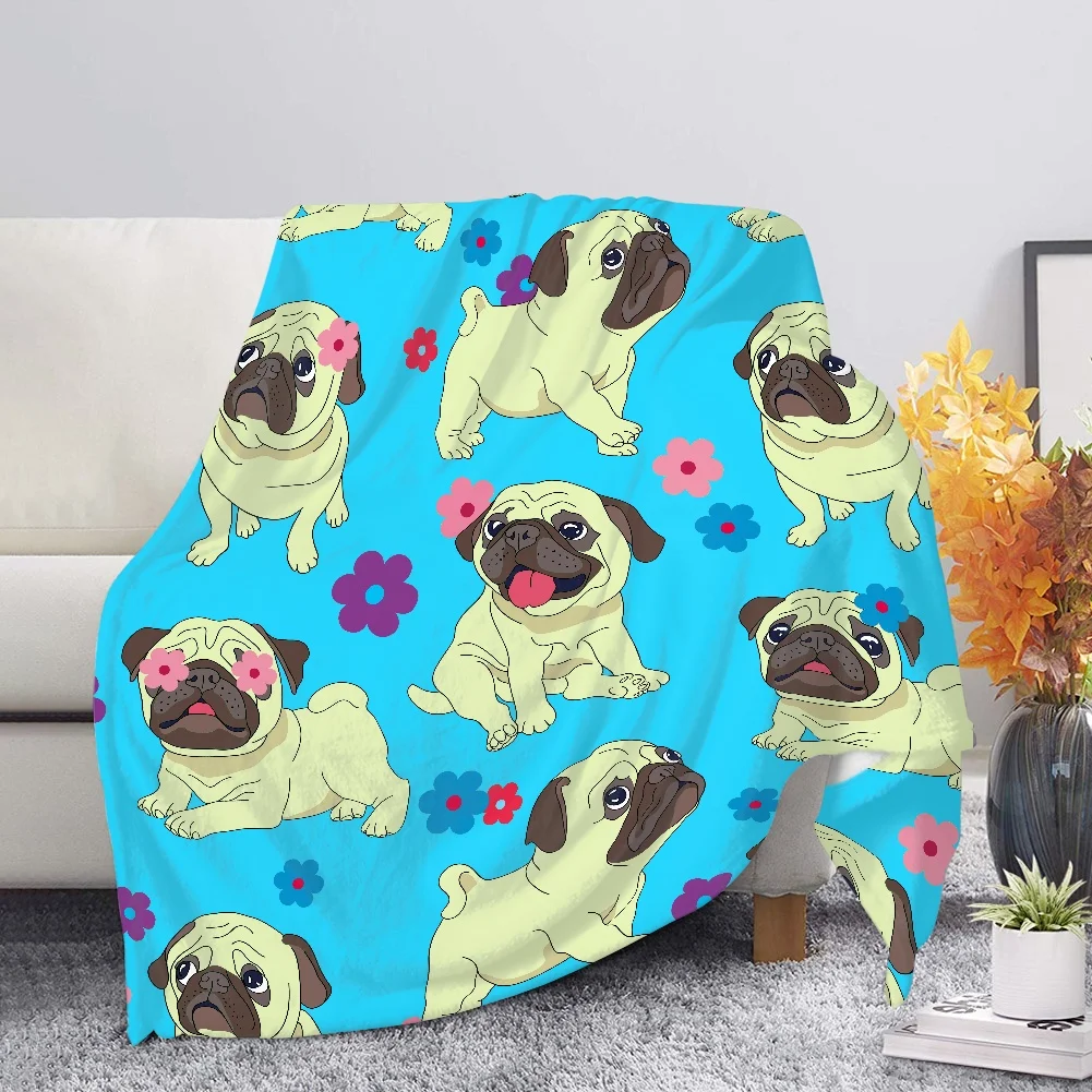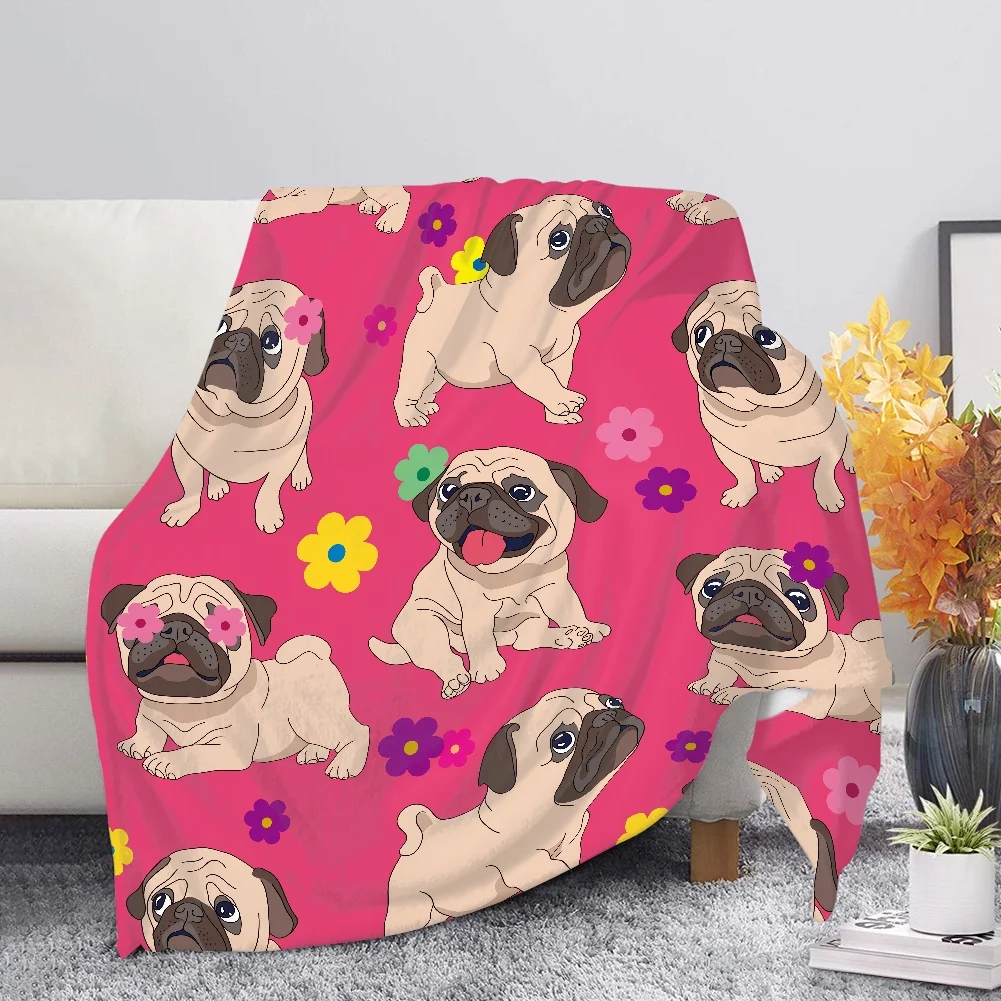 Одеяло шерпа с принтом собаки, флисовое покрывало с милым Мопсом, т...
