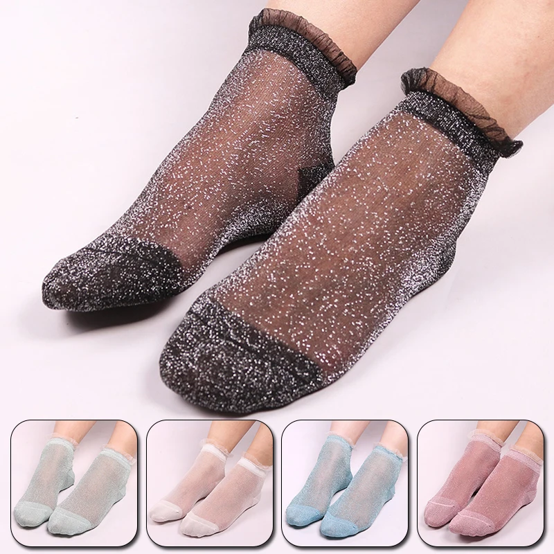 Носки женские, однотонные, из тюля, с оборками