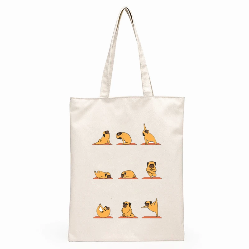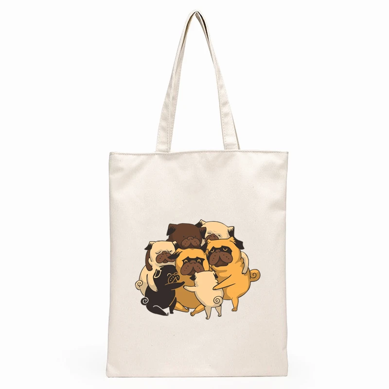 Сумка-тоут женская тканевая с принтом в виде мопса, многоразовая