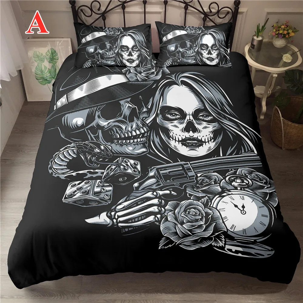 Комплект постельного белья с изображением розового черепа, комплект с пододеяльником QueenKing, с изображением персонажа мультфильма Мистер миссис, на Хэллоуин, День Святого Валентина, для пар