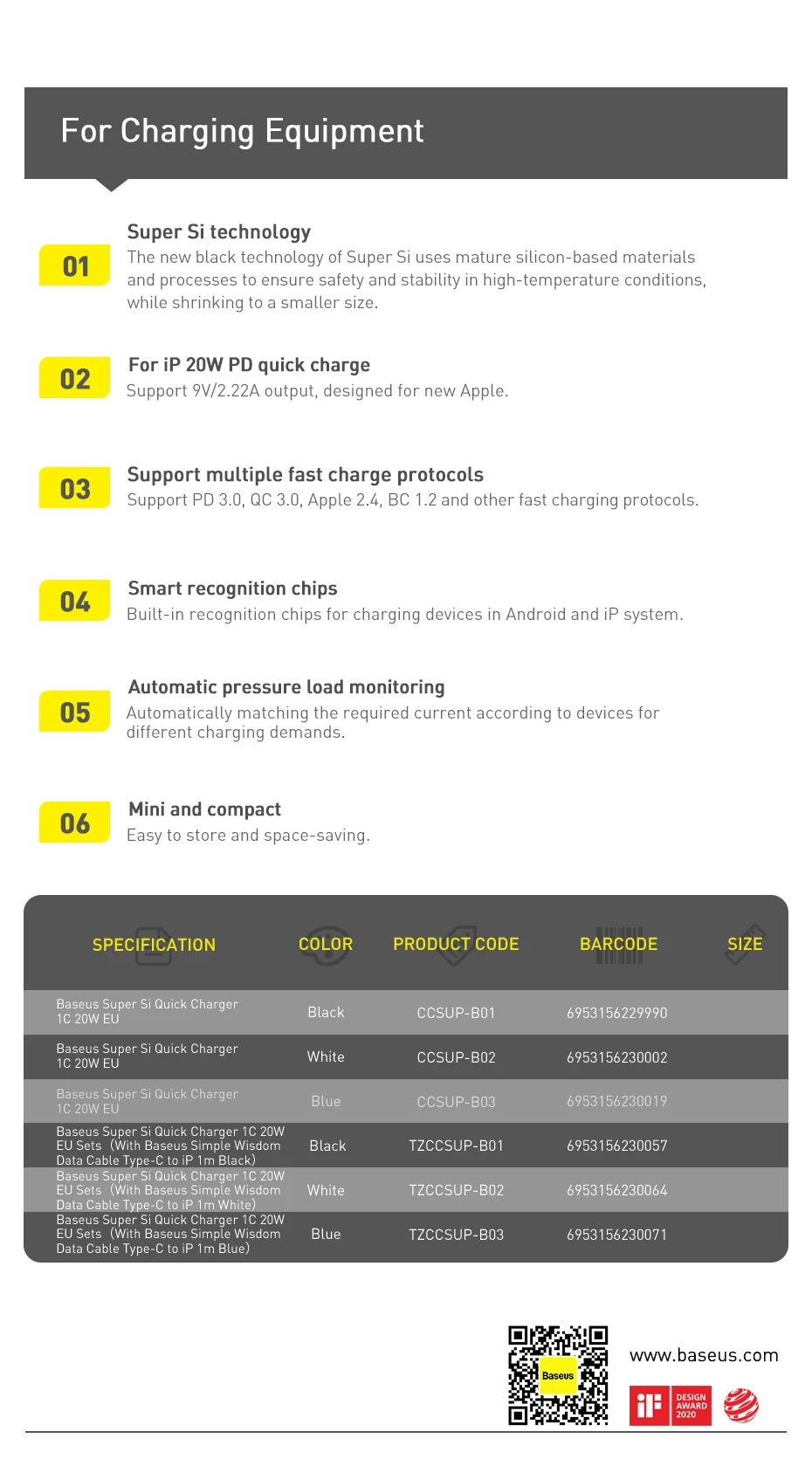 Зарядное устройство Baseus PD 20 Вт с поддержкой быстрой зарядки QC...