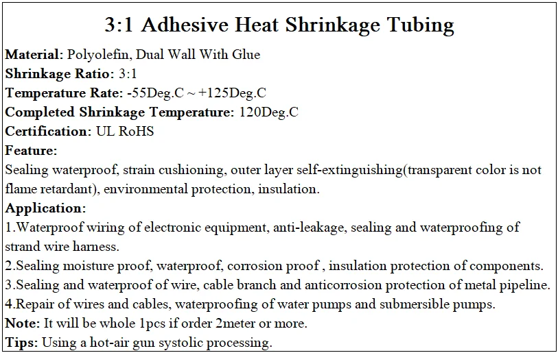 Номер модели3:1 Heat Shrink Tube