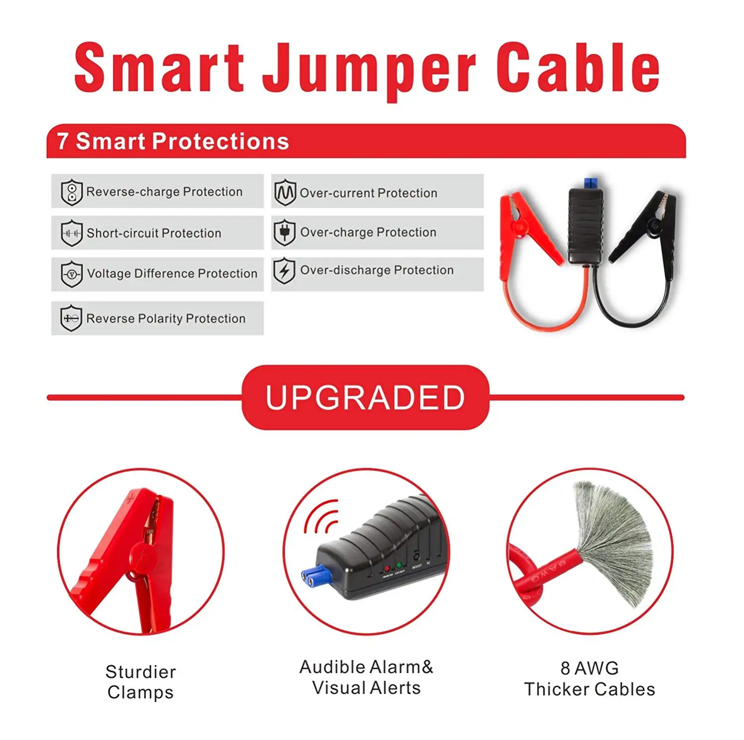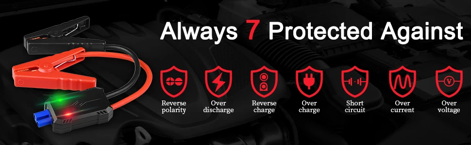 Интеллектуальные защитные зажимы J100 могут обеспечить защиту от короткого замыкания, защиту от перегрева, защиту от перезаряда, защиту от переразряда, защиту от перегрузки по току, защиту от перенапряжения и т. д. Безопасно подключаться к любым 12 вольт автомобильный аккумулятор, не беспокоясь о неправильные соединения или искры