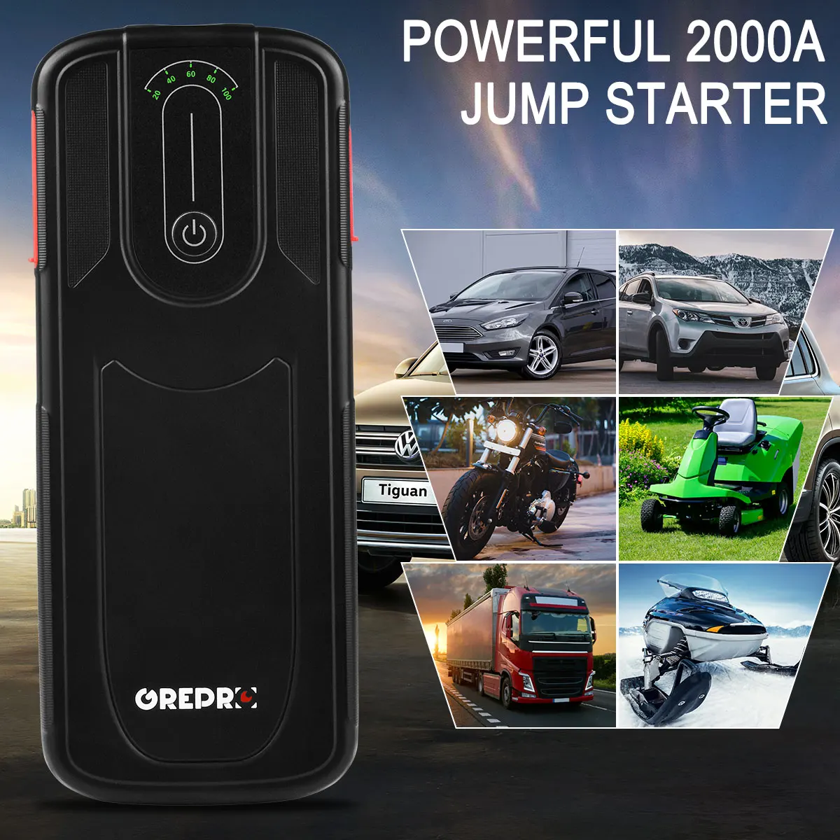 Безопасный Запуск аккумулятора за считанные секунды с помощью автомобильного пускового устройства GREPRO J100, до 30 раз с емкостью аккумулятора 18000 мА · ч и пиковым током 2000 А. Рассчитан на 12л газ или 7л дизельный двигатель в Максе, например, авто, грузовик, мотоцикл, RV, внедорожник, лодка, трактор и т. Д.