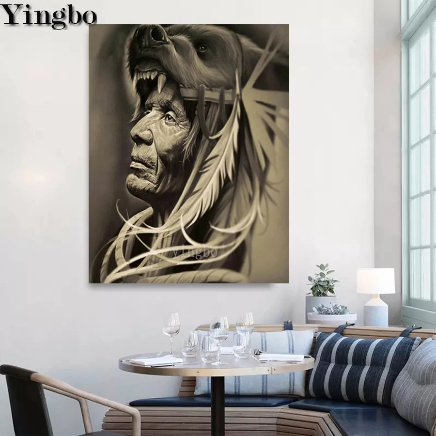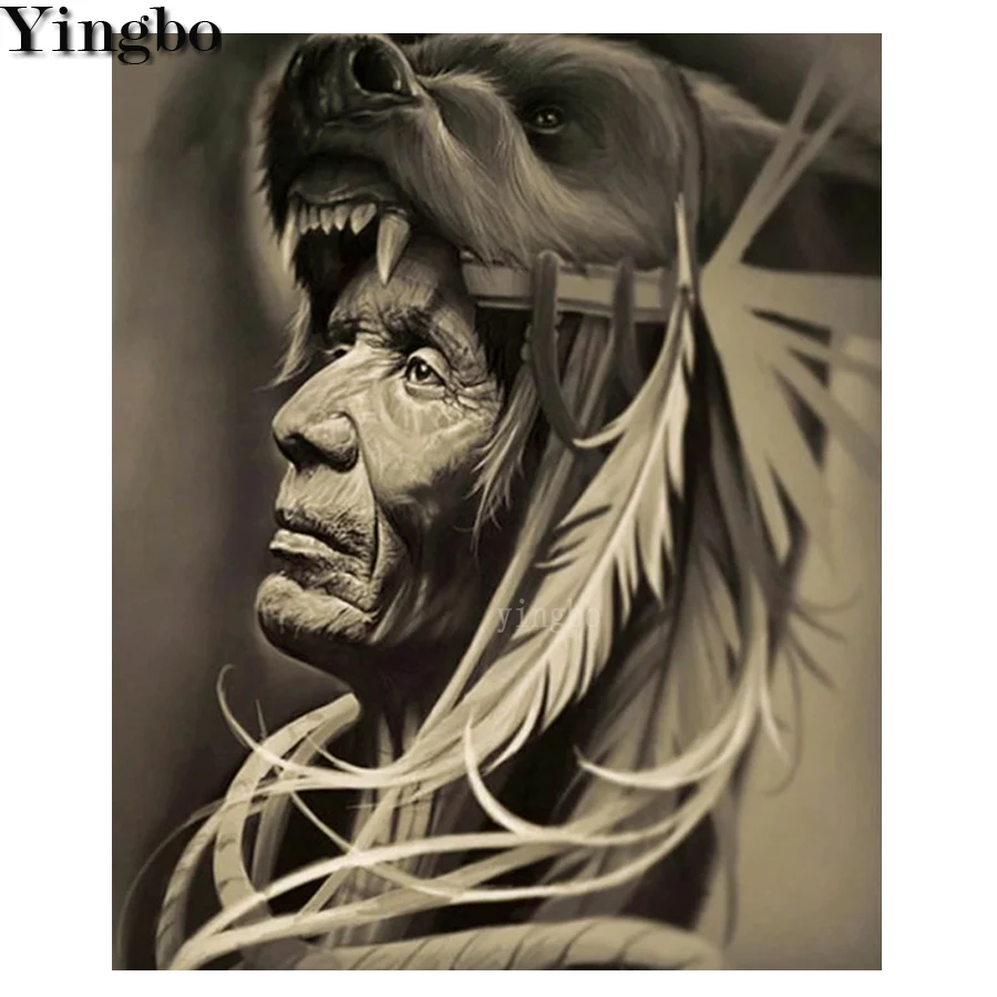 Набор для алмазной живописи 5D "сделай сам", Алмазная мозаика, индийский охотник, волк, перья, полная Алмазная вышивка квадратными и круглыми стразами, Новое поступление