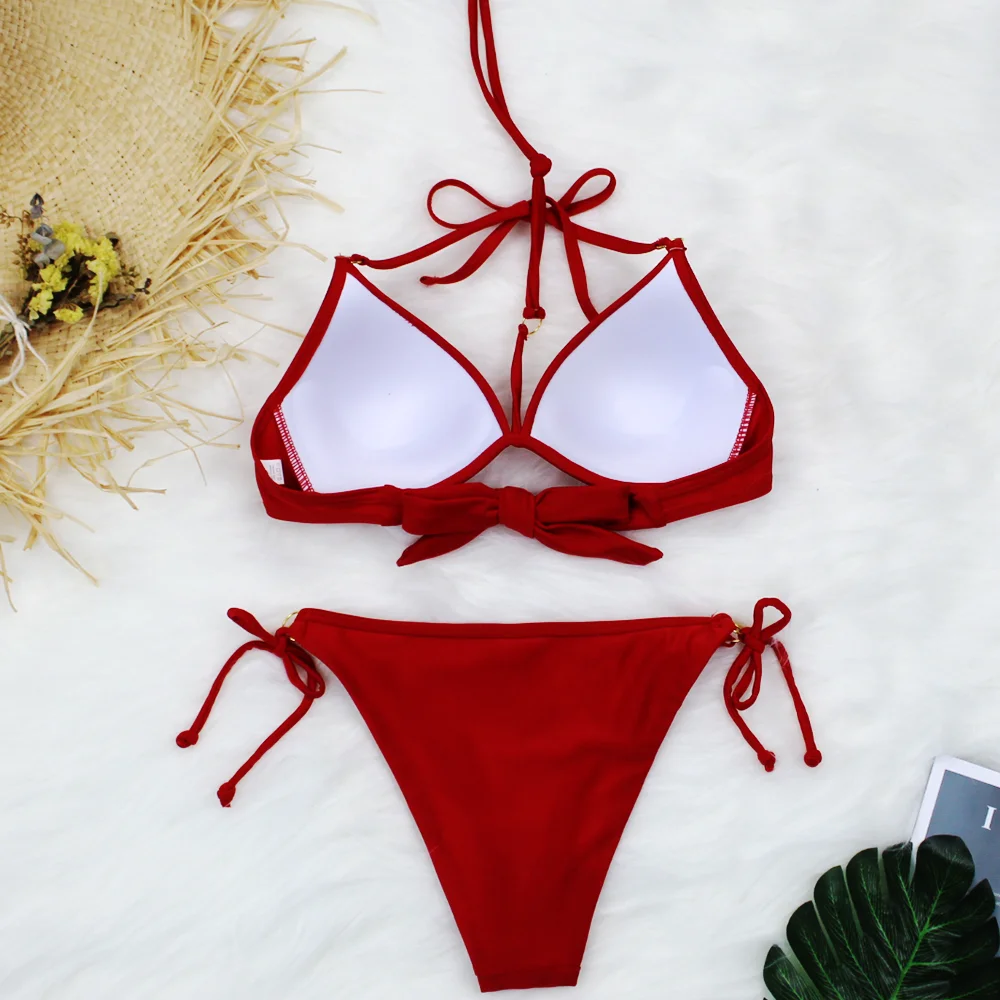 Бикини пуш-ап, женский купальник с лямкой на шее, бандажный купальн...