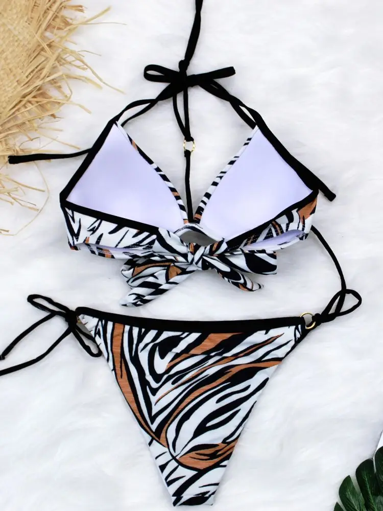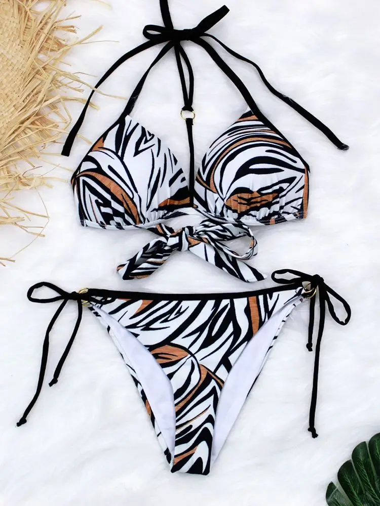 Бикини женское из двух частей с принтом, пикантный купальный костюм...