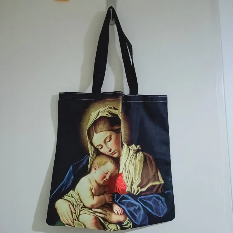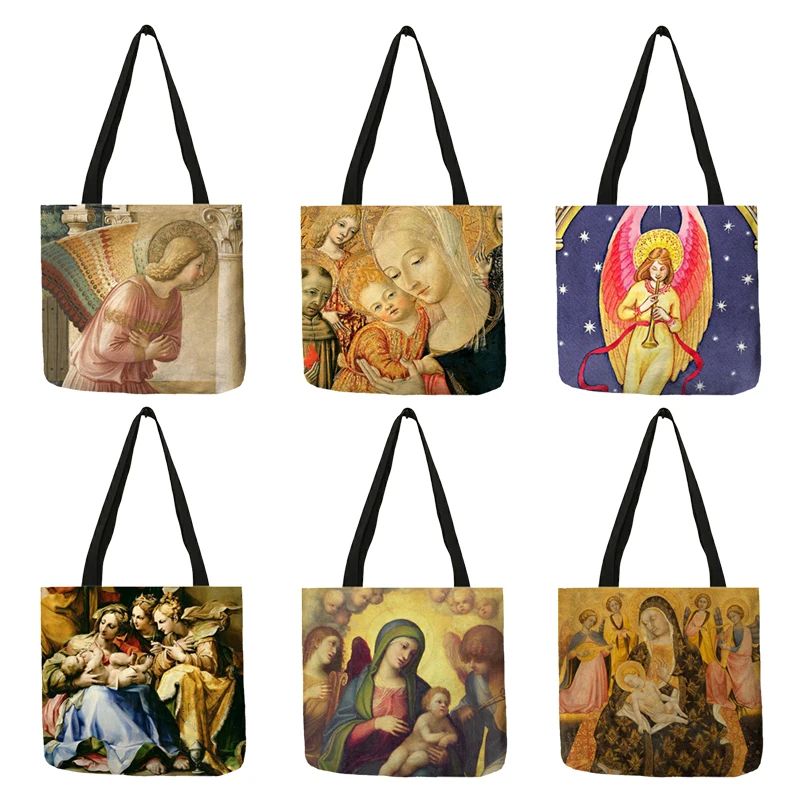 Персонализированные Женские сумки 2021 Девы Марии картина маслом печати многоразовые хозяйственные сумки для продуктов Дамы Сумка B13221