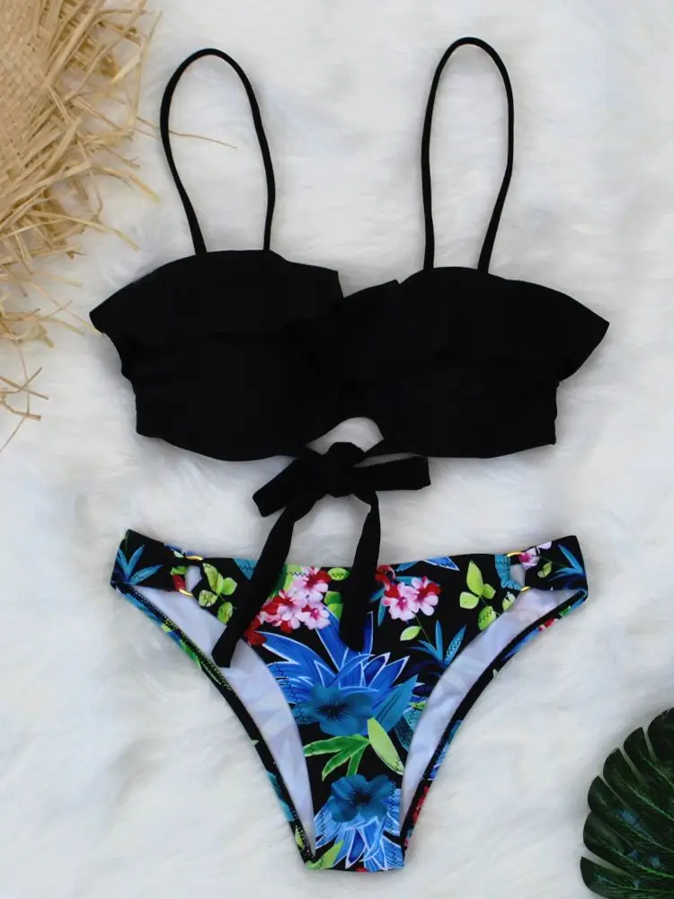 Бикини женское с оборками и принтом, винтажный купальный костюм с ч...