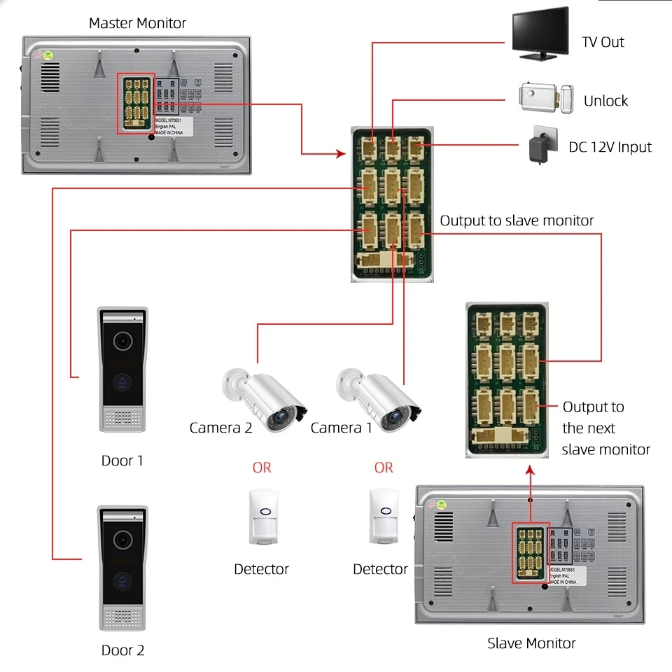 Система видеодомофона Jeatone поддерживает подключение с PIR детекторами, аналоговой камерой и электронным замком. Который может защитить ваш дом и собственность во всех аспектах.
