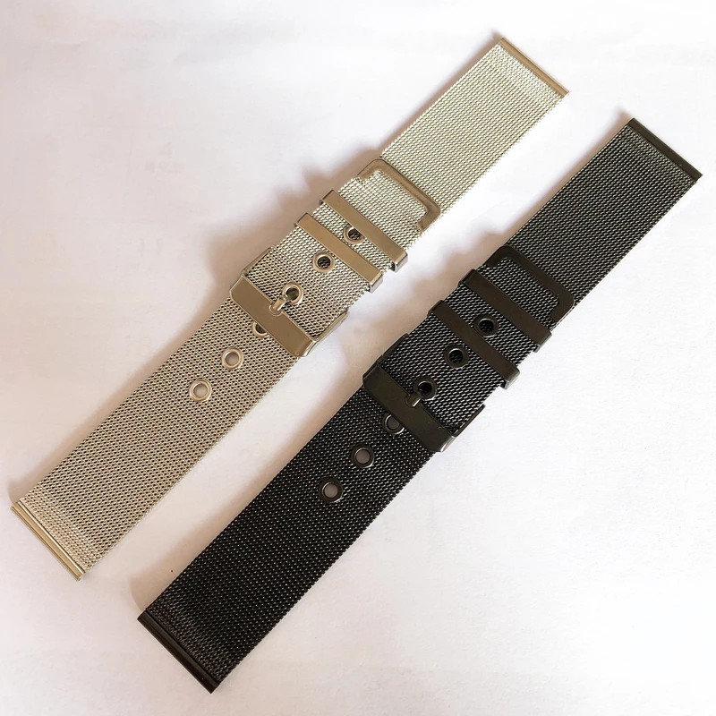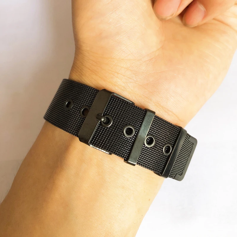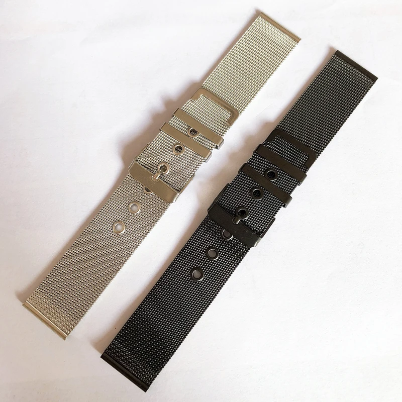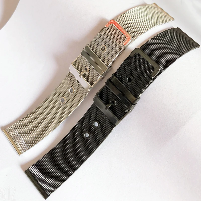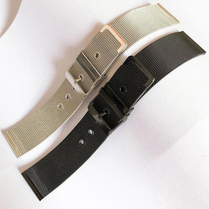 Ремешок Миланская петля для наручных часов, Универсальный сменный металлический браслет из нержавеющей стали, серебристый и черный цвета, 20 мм 22 мм