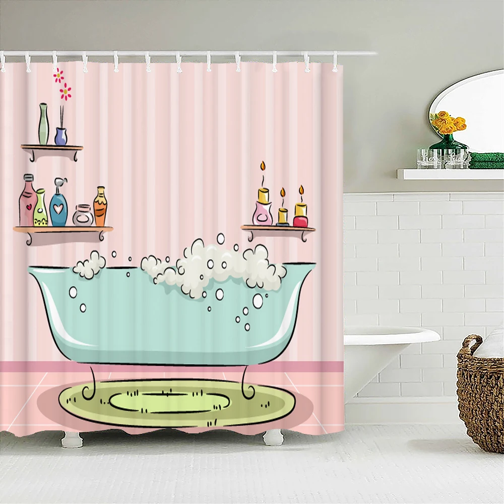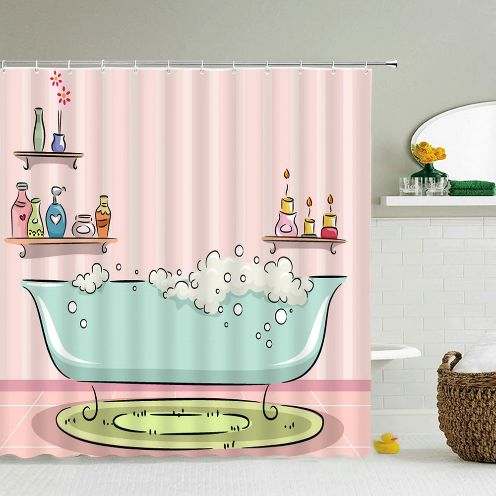 Романтическая розовая 3D занавеска для душа для девочек с принтом для ванной, занавеска для душа, водонепроницаемая полиэфирная ткань, занавеска для ванной, украшение