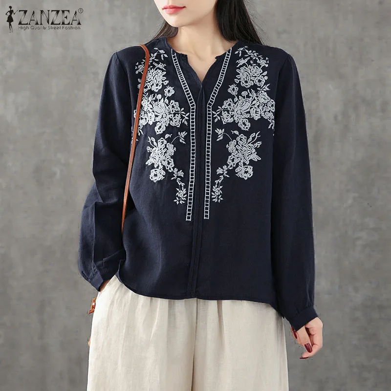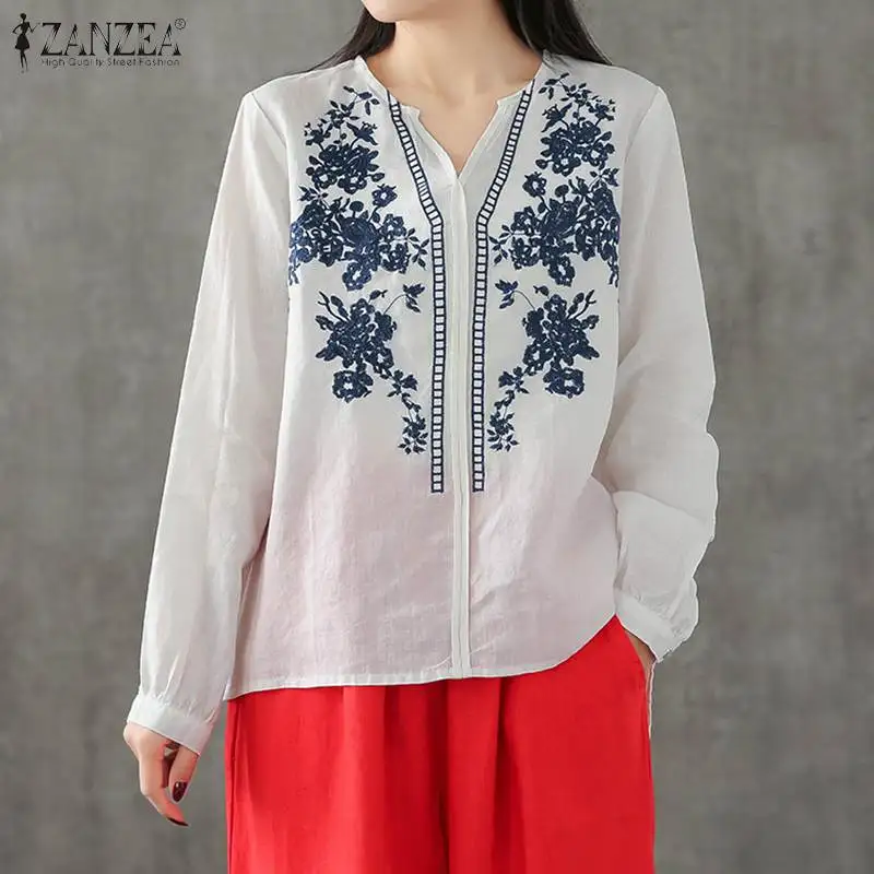 Кафтан ZANZEA 2021, весенние Рубашки, женские блузки с вышивкой, по...