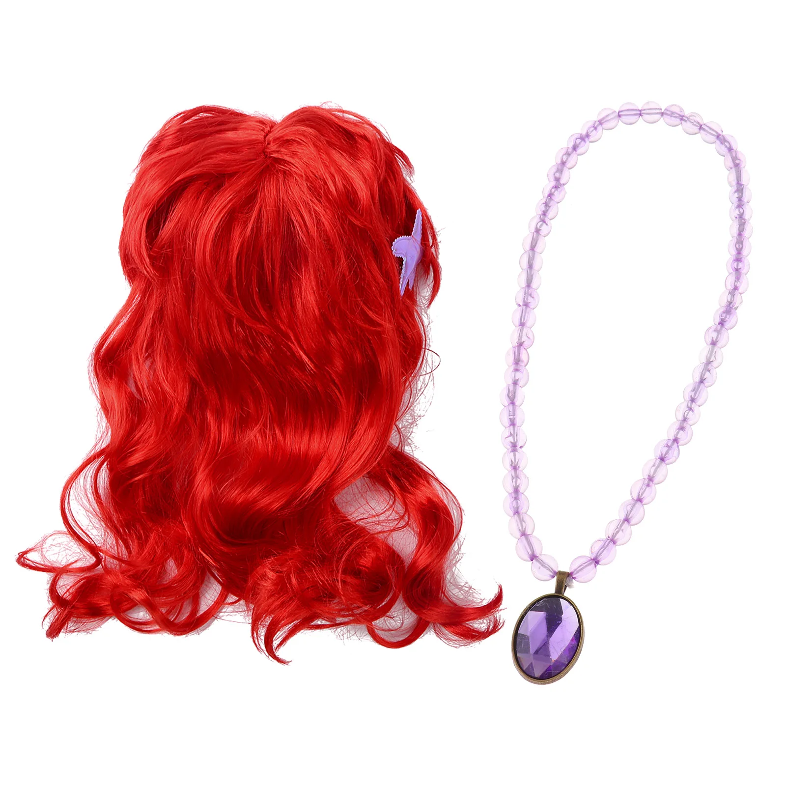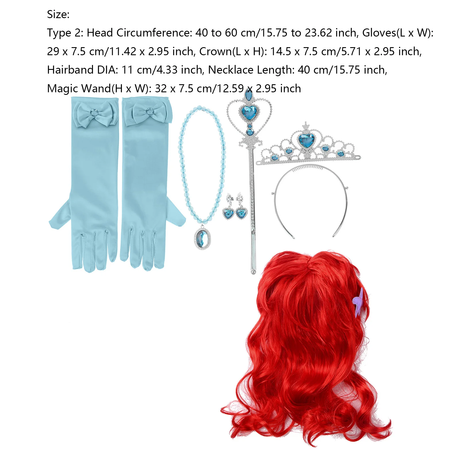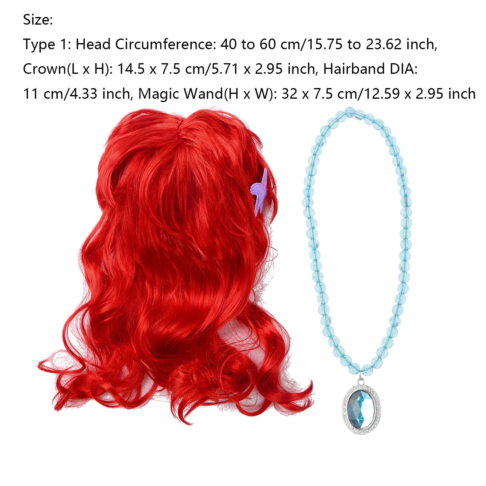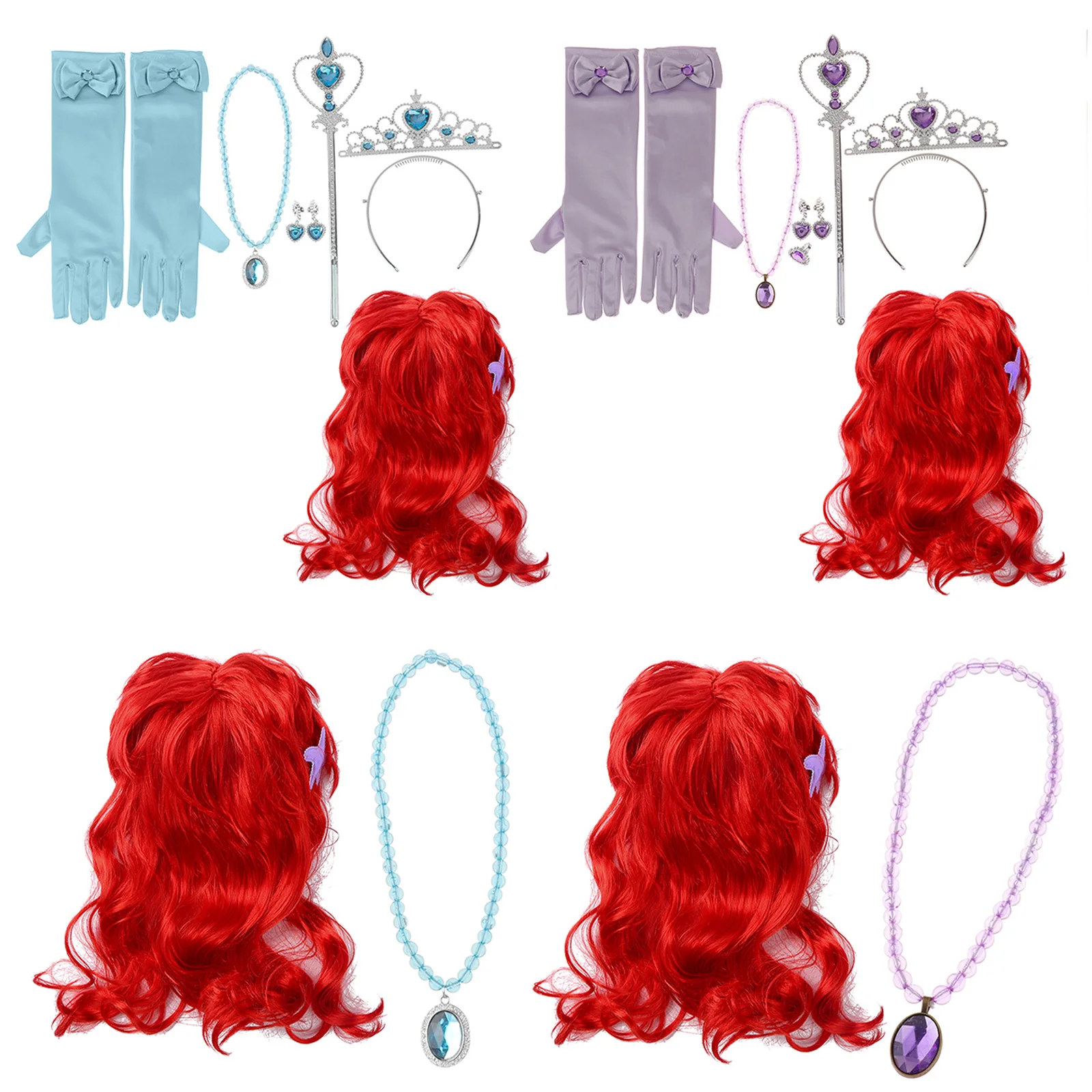 Костюм принцессы русалки, аксессуары, подарочный набор, длинные волнистые красные парики для косплея, корона, тиара, палочка для девочек, вечерние костюмы на Хэллоуин, аниме, косплей, костюм русалки, аксессуары