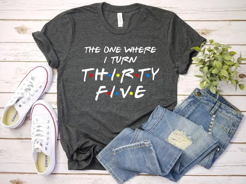 Подарок на день рождения, хлопковая футболка с надписью The One I Turn тридцать Five, футболка с короткими рукавами и круглым вырезом, одежда унисекс
