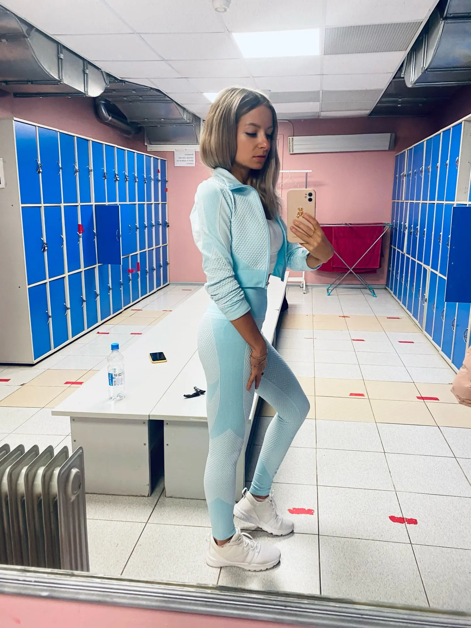 Классный на русский размер М и Китай м тоже нормально сел, чашки только вытащила мне они не нужны и пояс на лосинах подворачиваю вниз потому что он слишком высоко можно на грудь досягнуть или до шеи