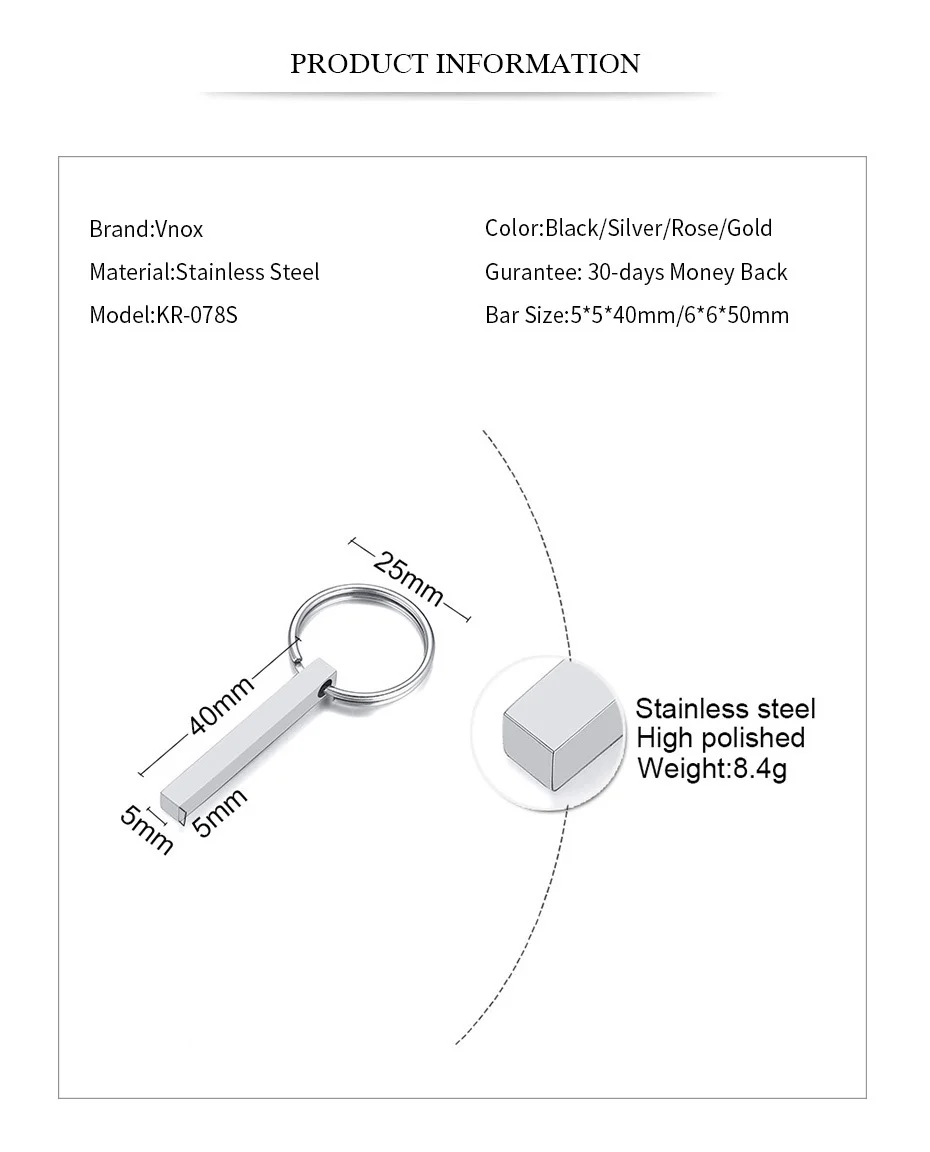 Vnox Персонализированная 1-4-сторонняя Гравировка 3D бар вертикальные брелки для мужчин женщин мужчин минималистская нержавеющая сталь пользовательские подарки ювелирные изделия