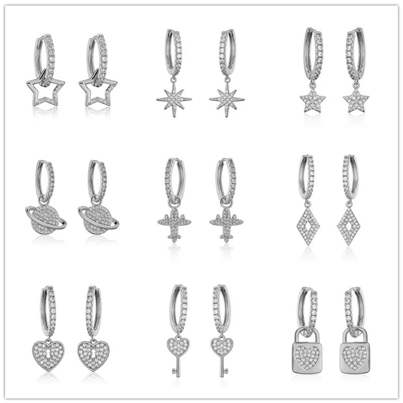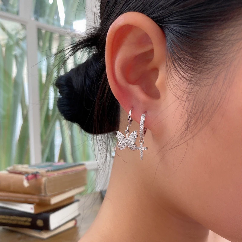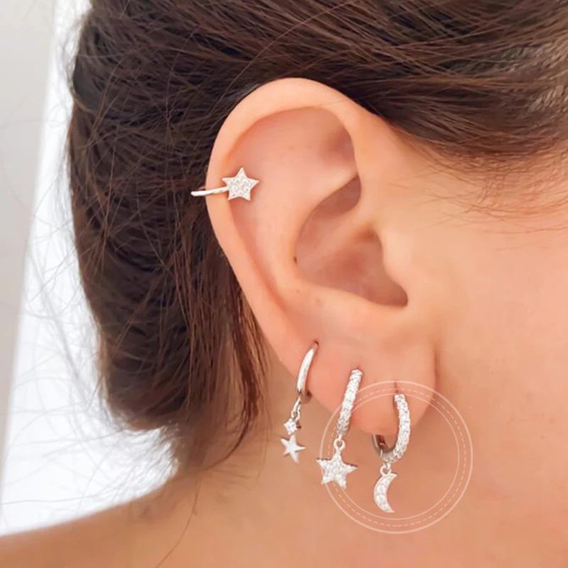 Серьги-кольца с подвесками в виде Луны, Креста и молнии, 1 шт.