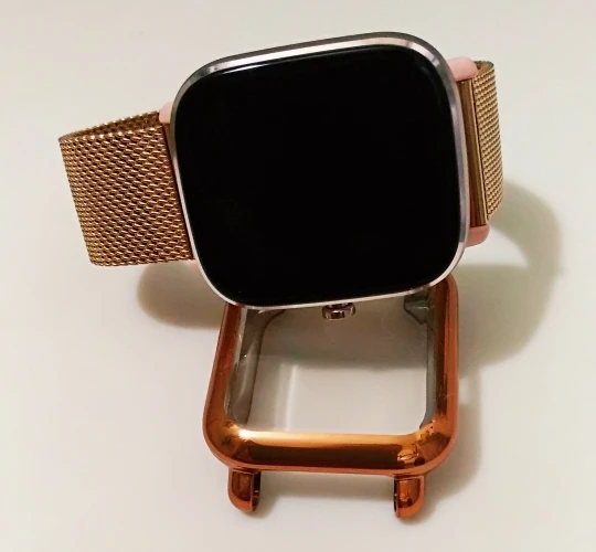 Браслет хороший. Все застежки и крепления качественные. Смотрится на руке отлично, держится хорошо. Бампер - на любителя. С бампером часы сразу превращаются в довольно пухлый девайс. Однако бампер на работу экрана не сказывается, все работает. Если нужно защитить часы (временно, в походе или при работах каких) бампер подойдет. Для повседневной носки - слишком аляповато.