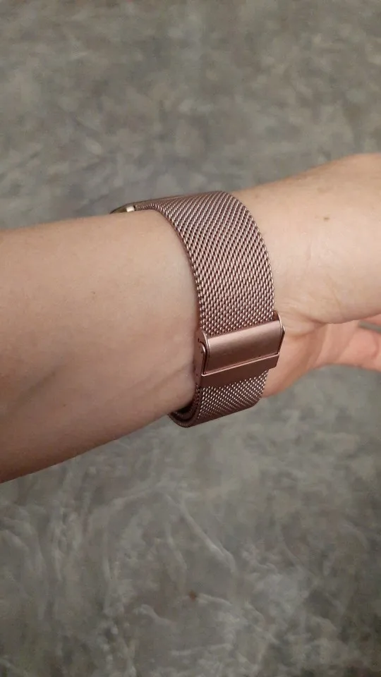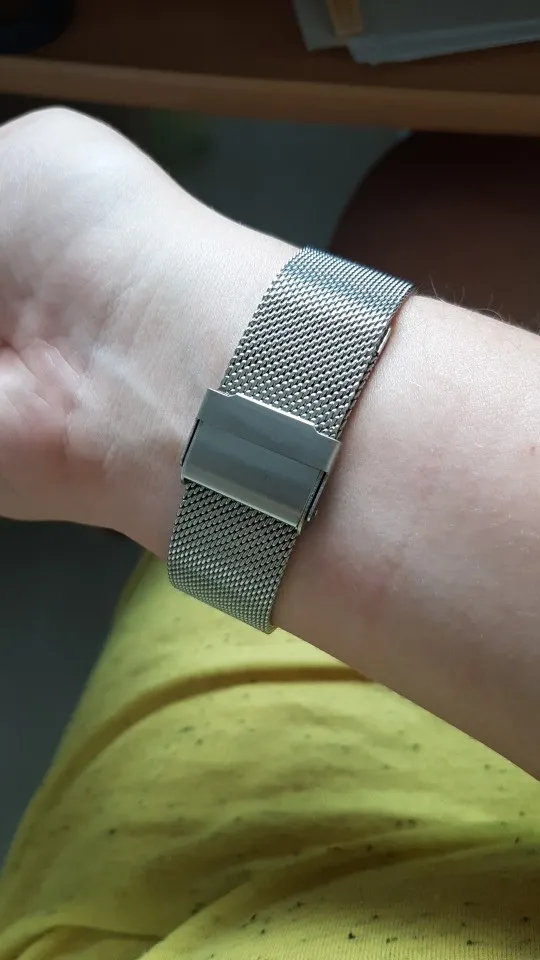 Получила ремешок, носить не смогу, по порядку: 1. Он пахнет окислившимся металлом, я его не надевала, но уверена на 99.9%, что он на руке оставит следы изнутри. о гипоалергенности речи не идёт 2. Оси крепления: сделаны складными, в наборе идёт спец инструмент, который должен помочь их заправить, но фигушки. у меня ничего не получилось. почему не сделать удобный рычажок, как в силиконовых браслетах-вопрос. огроооомный минус 3. непонятный замок из тонкого металла, хлипкий 4. из плюсов: в комплекте 3 оськи, салфетки для протирки экрана. вывод от себя: я это диво носить не буду.