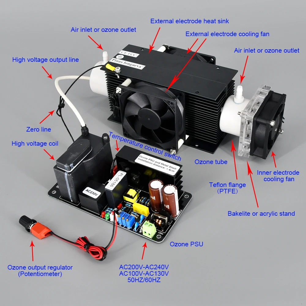 Вам нужен охлаждающий вентилятор для охлаждения озоновой трубки и озонового блока.