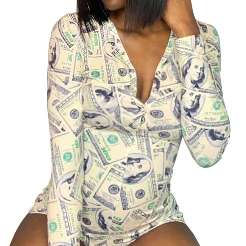 Пикантная Пижама-комбинезон для взрослых с принтом денег, пижама с ...