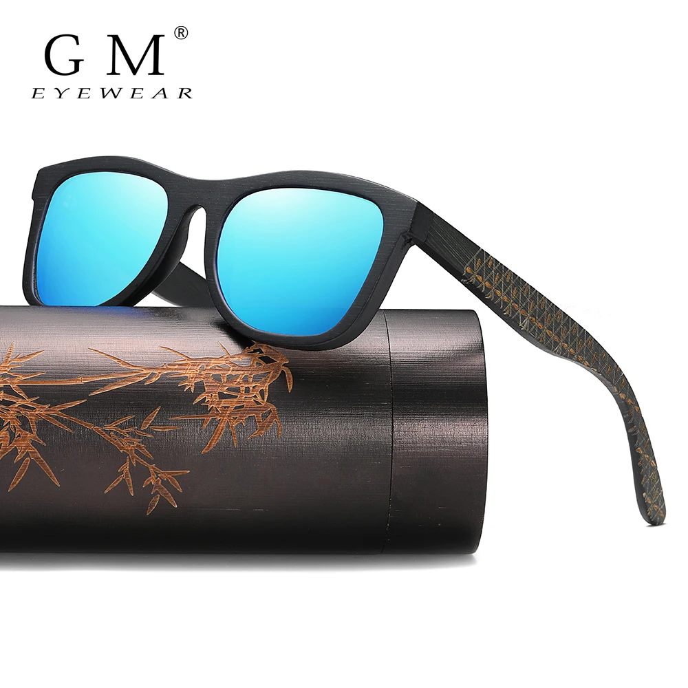 Деревянные солнцезащитные очки GM с гравировкой имени серые поляризованные линзы Ретро бамбуковые солнцезащитные очки с подарочной коробкой мужские солнцезащитные очки Прямая поставка OEM