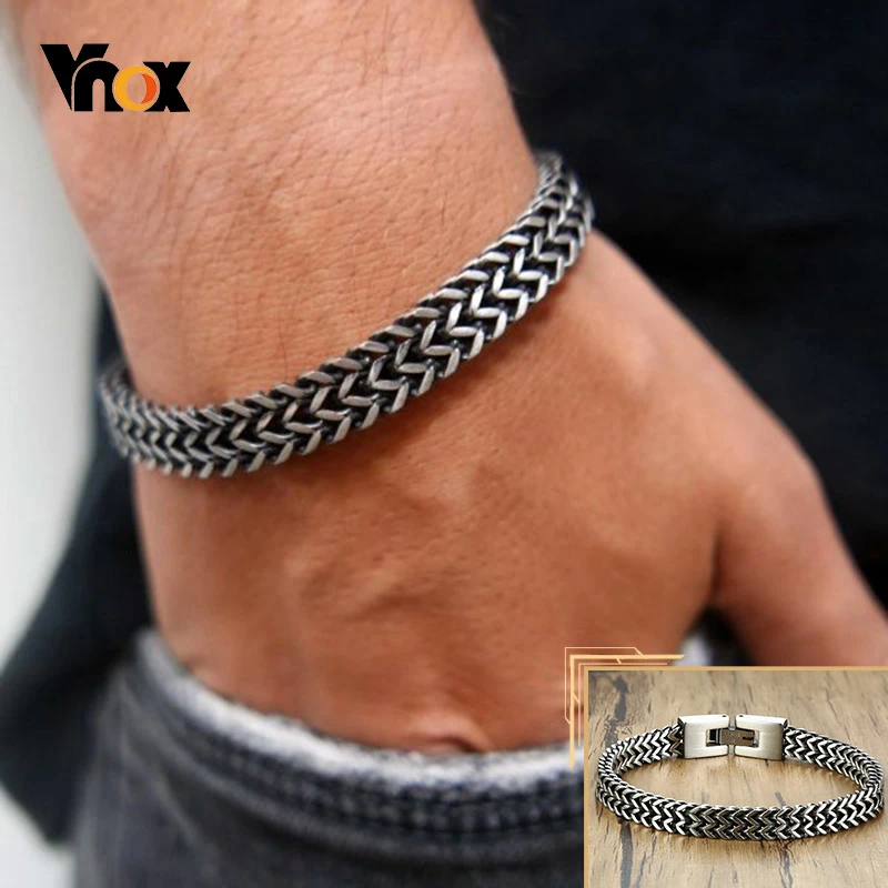 Мужские антикварные окисленные браслеты Vnox из цепи лисий хвост Франко из нержавеющей стали в стиле панк, винтажное кубинское двойное украшение в стиле ретро