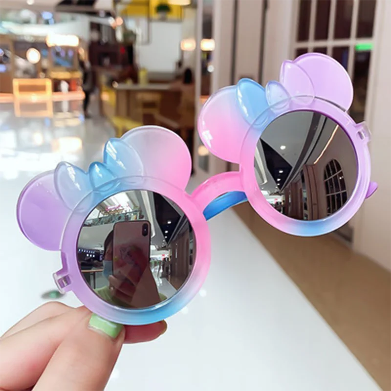 Солнцезащитные очки с градиентом для девочек, аниме Микки Минни, принцессы с ушами, модные круглые аксессуары для защиты от УФ лучей