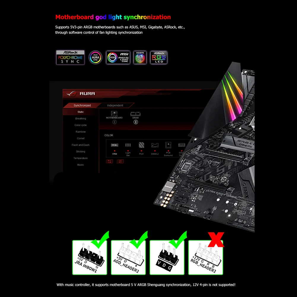 2. Сочетается с музыкальным контроллером бренда, поддерживает синхронизацию 5V ARGB светильник.