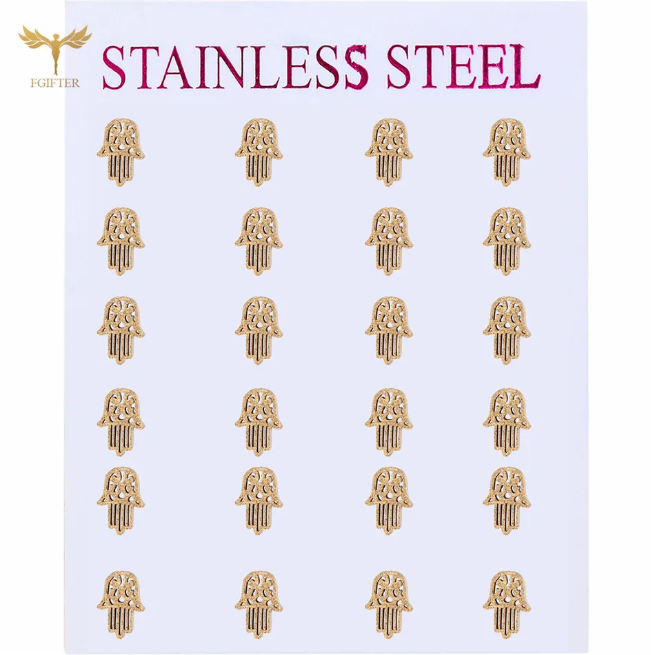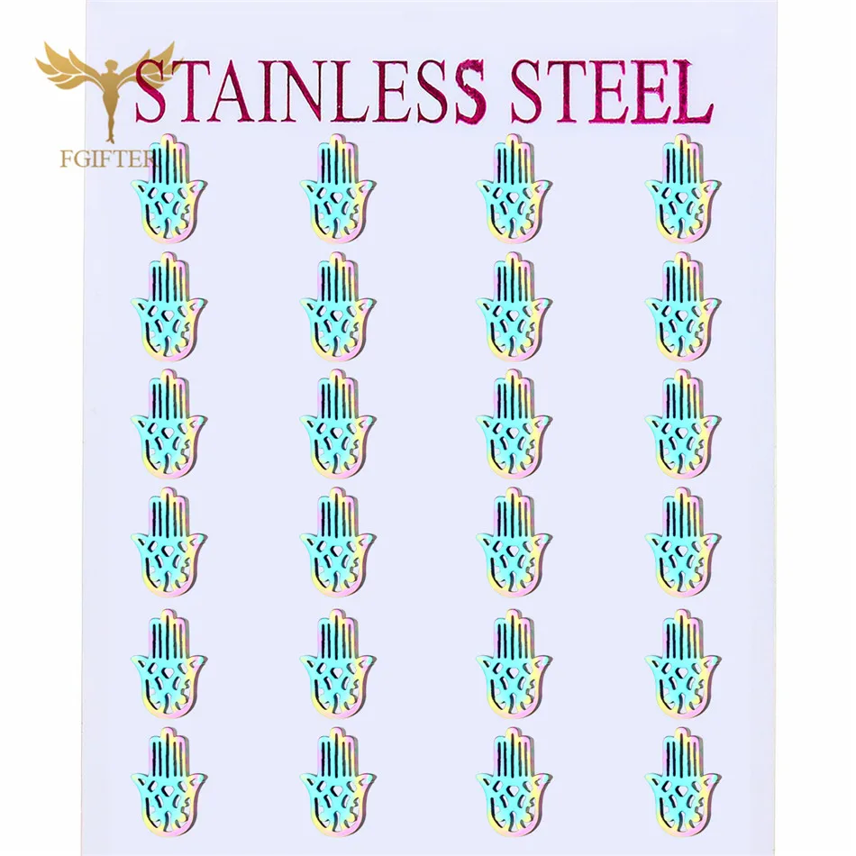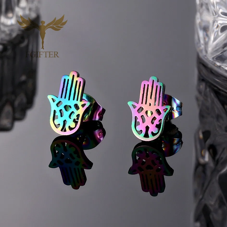 Новый Для женщин серьги религиозные виде амулета "Рука Фатимы", серьги-гвоздики в виде многоцветный выбрать Нержавеющаясталь ювелирных украшений, оптовая продажа