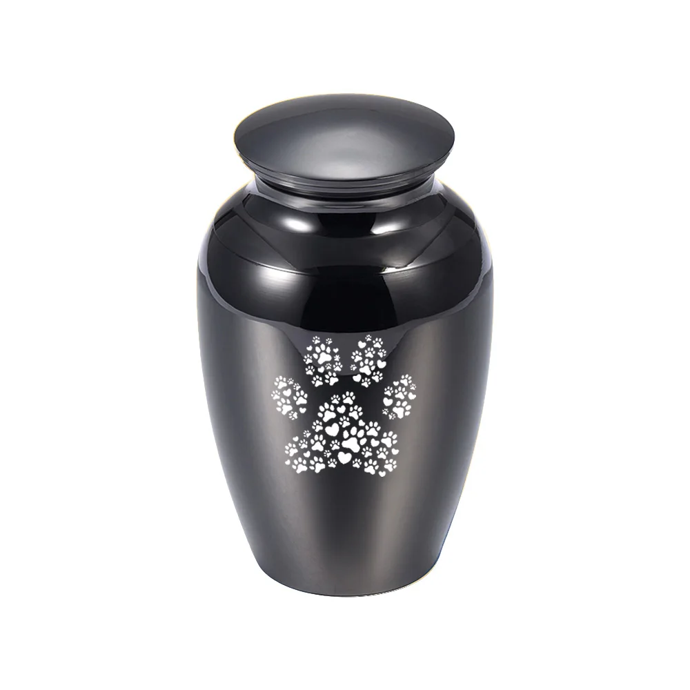 Алюминий любимчика сплава шкатулки урны большой следы лап Мемориал урна с рисунком собачки и котика пепел держатель урны кремации для люди и домашние животные пепел синийчерный