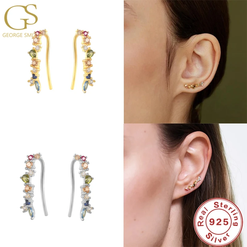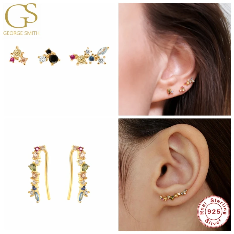 Женские серьги-гвоздики из 100% стерлингового серебра 925 пробы GS, элегантные милые и универсальные серьги с бриллиантами, ювелирные украшения