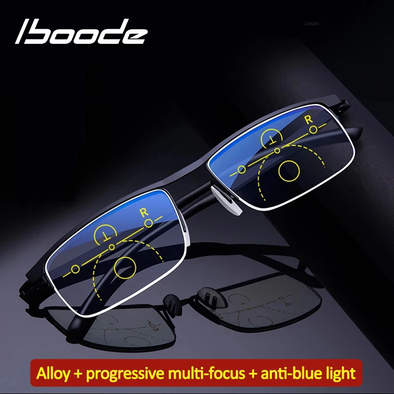 Очки для чтения iboode для мужчин и женщин, интеллектуальные, с защитой от синего светильник ближнего и дальнего света, с регулировкой двойного назначения, Т-образная полуоправа