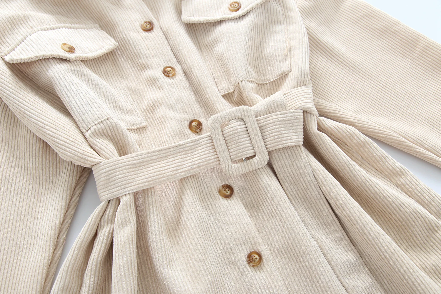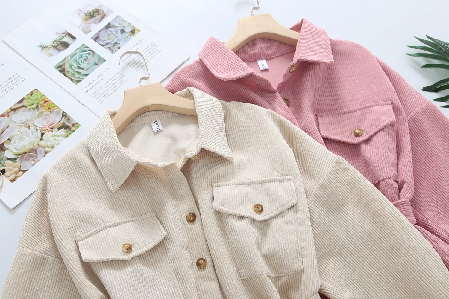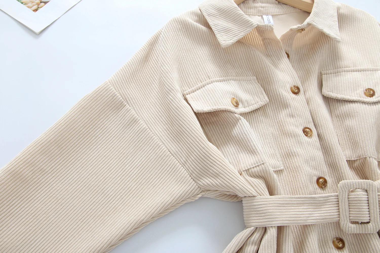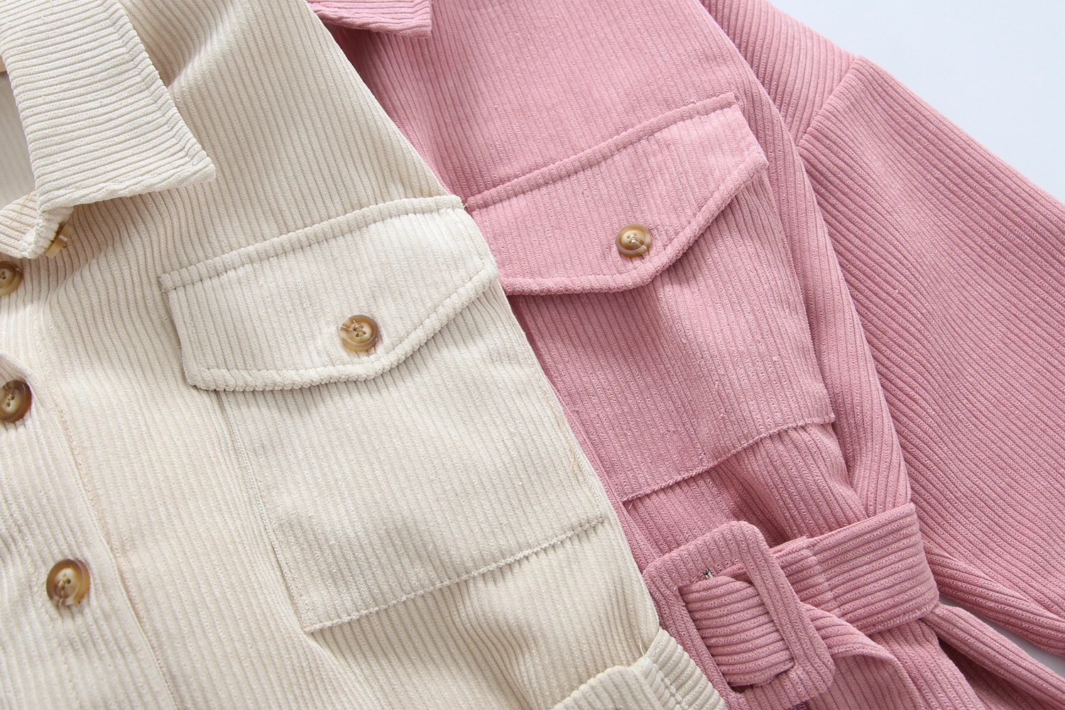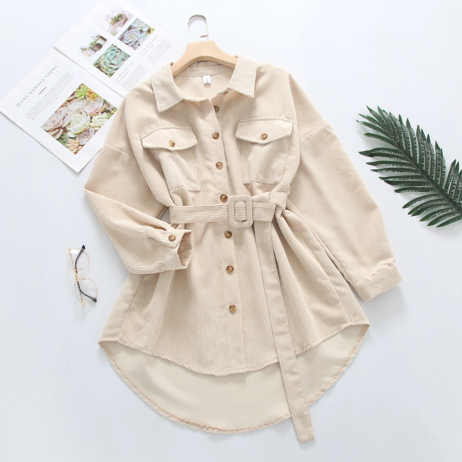 2021 Новое поступление Осенняя Женская однотонная Осенняя Вельветовая винтажная блуза с рукавом «летучая мышь» и поясом, свободная длинная рубашка с отложным воротником, Женские повседневные топы T0D102F