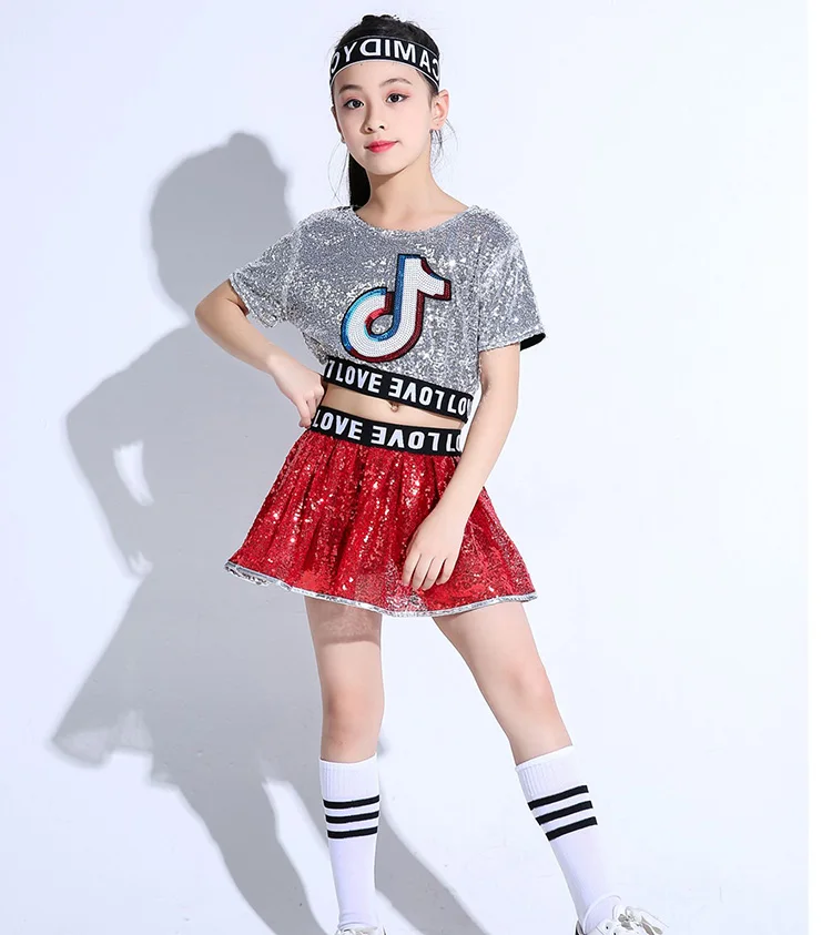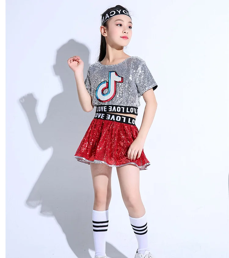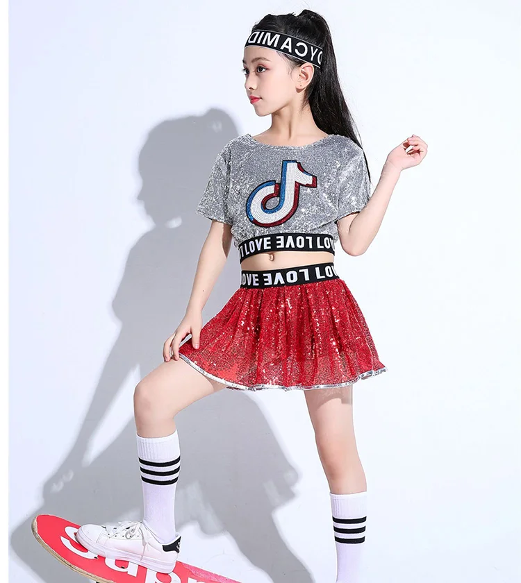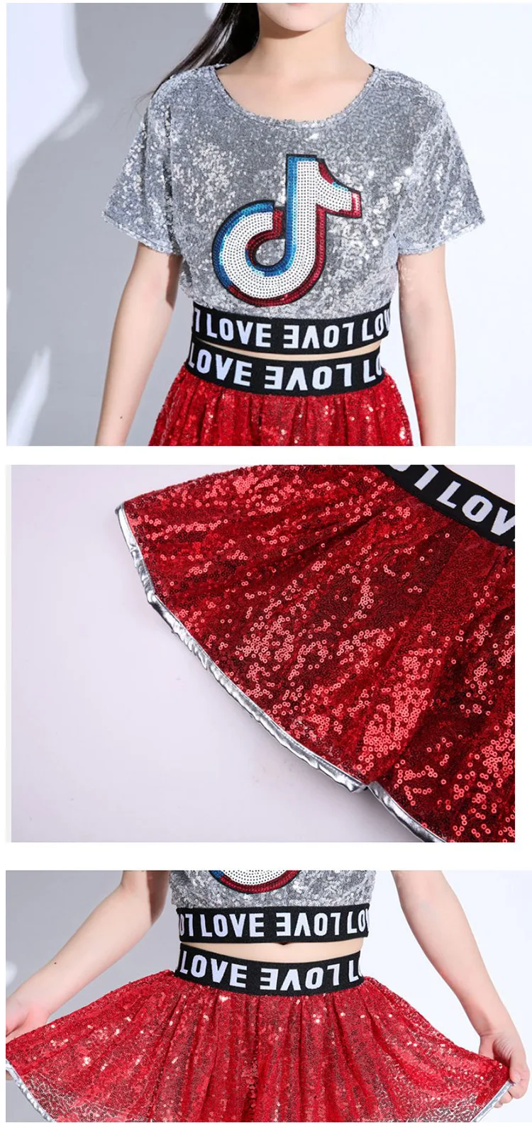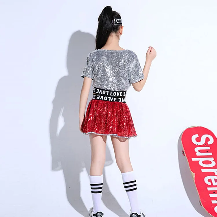 Детский костюм для джаза и современных танцев, одежда в стиле хип-хоп, уличная одежда, одежда для выступлений, сценическое джазовое платье с блестками в стиле хип-хоп для девочек